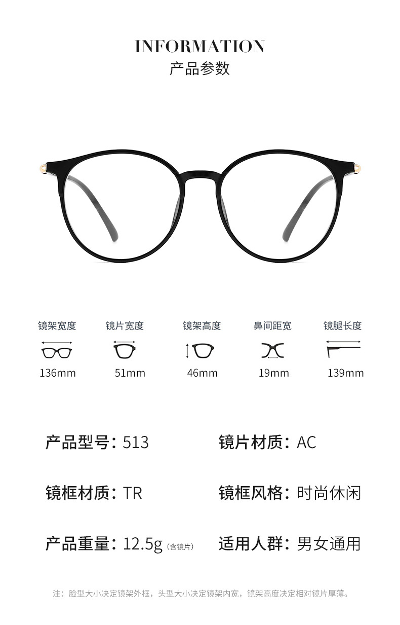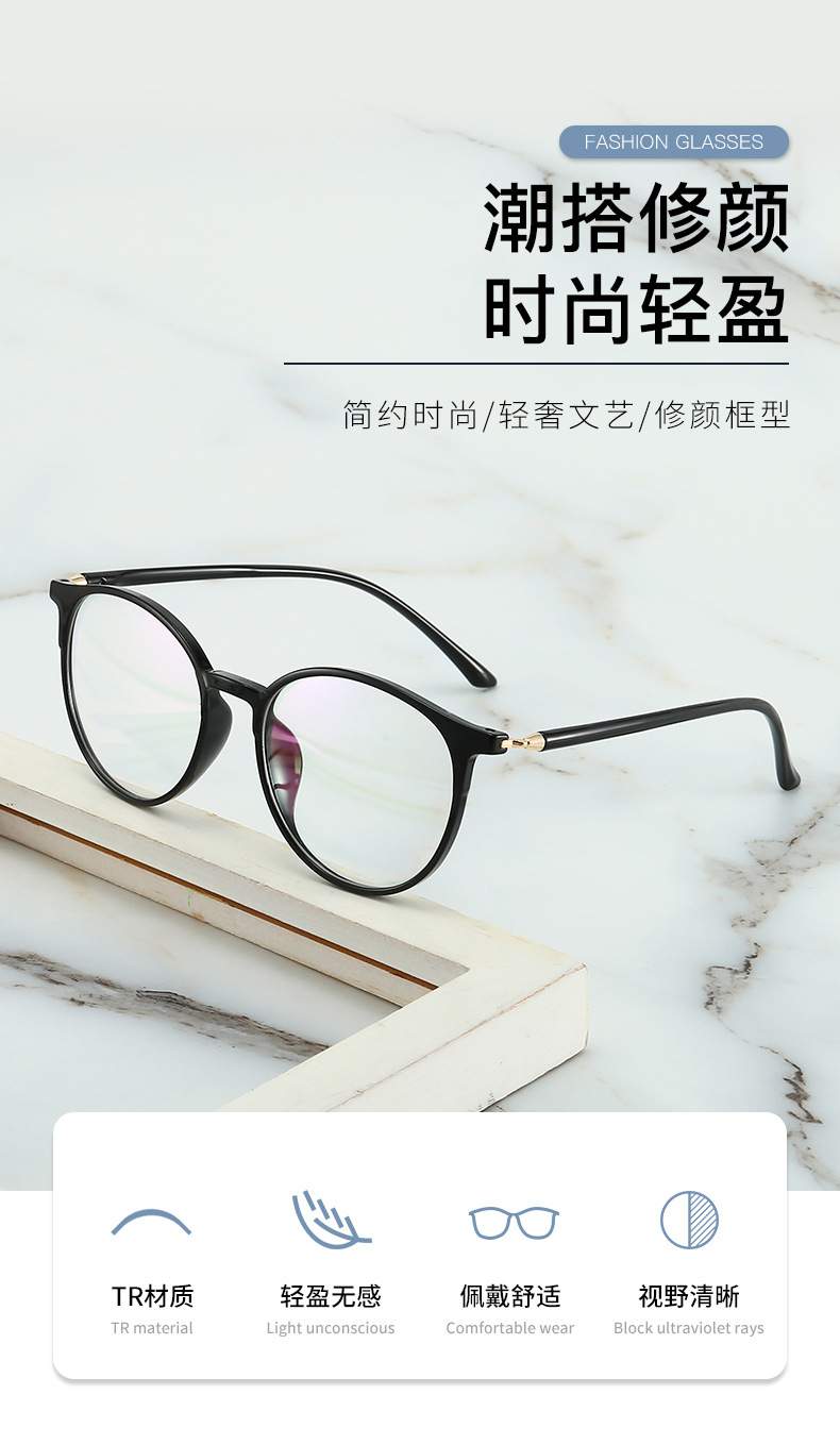 Round full frame TR90 myopia optical frame black retro men's and women's glasses frame