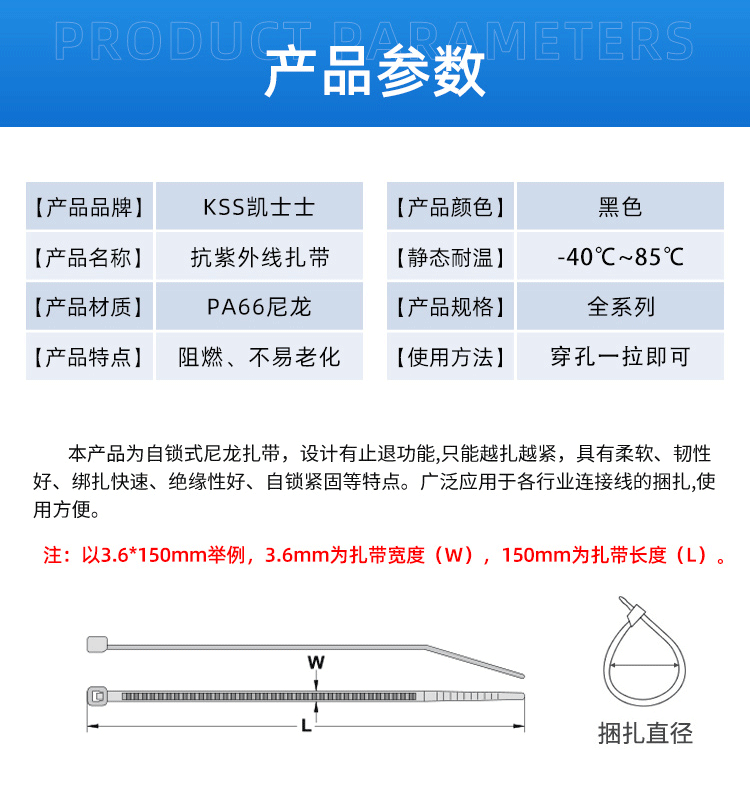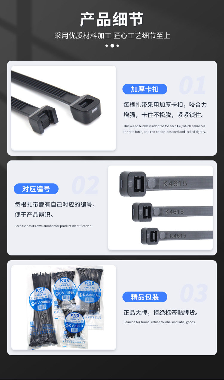 Kss Anti-Uv Imported Nylon Cable Ties Outdoor Sun Protection and Weather-Resistant Black Cable Ties Anti-Uv Kss Cable Ties