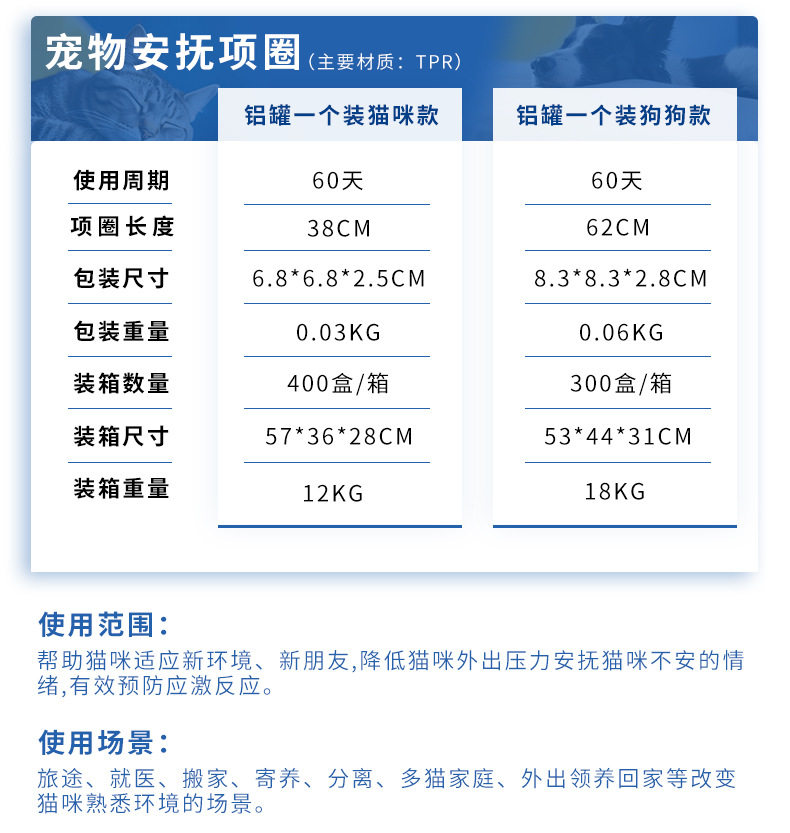 | Color | The product is packaged in english by default and is only for export sales. domestic purchases are equivalent to the default disclaimer (orders placed with this sku will not be shipped),Soothing dog gray collar can,Soothing cat gray collar can,Soothing dog purple collar can,Soothing cat purple collar can,Soothing dog purple color box packaging,Soothing cat purple color box packaging,Calm cat pink collar can,Soothing cat blue collar can,Soothing cat orange collar can,Soothing cat black collar can,Soothing dog orange collar can,Soothing dog blue collar can,Soothing dog black collar can,Soothing dog pink collar can,Soothing dog purple collar bag,Soothing cat purple collar bag,Soothing dog gray collar bag,Soothing cat gray collar bag,Soothing dog pink collar bag,Soothing cat pink collar bag,Soothing dog black collar bag,Soothing cat black collar bag,Soothing dog blue collar bag,Soothing cat blue collar bag,Soothing dog orange collar bag,Soothing cat orange collar bag,Soothing buckle transparent blue dog 65cm can,Soothing buckle transparent blue cat 45cm can,Soothing buckle transparent powder dog 65cm can,Soothing buckle transparent pink cat 45cm can,Soothing buckle translucent green dog 65cm can,Soothing buckle translucent green cat 45cm can,Soothing buckle transparent orange dog 65cm can,Soothing buckle transparent orange cat 45cm can |