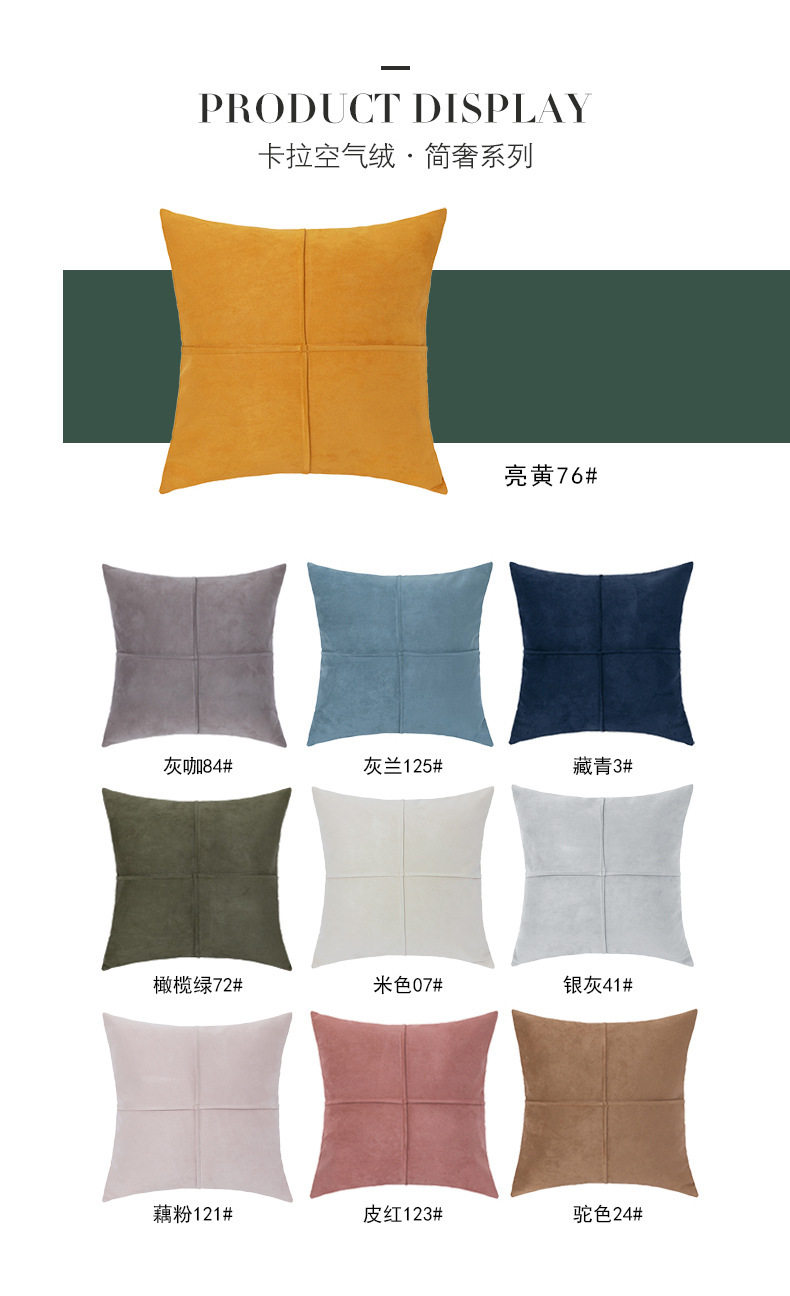 Factory Direct supply solid color suede pillow simple ins style sofa pillow backrest home bedroom bed pillow