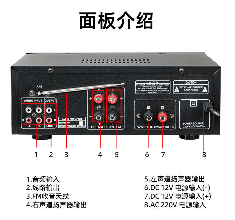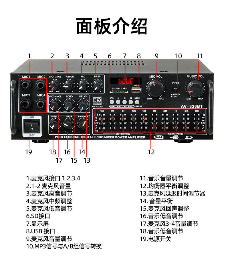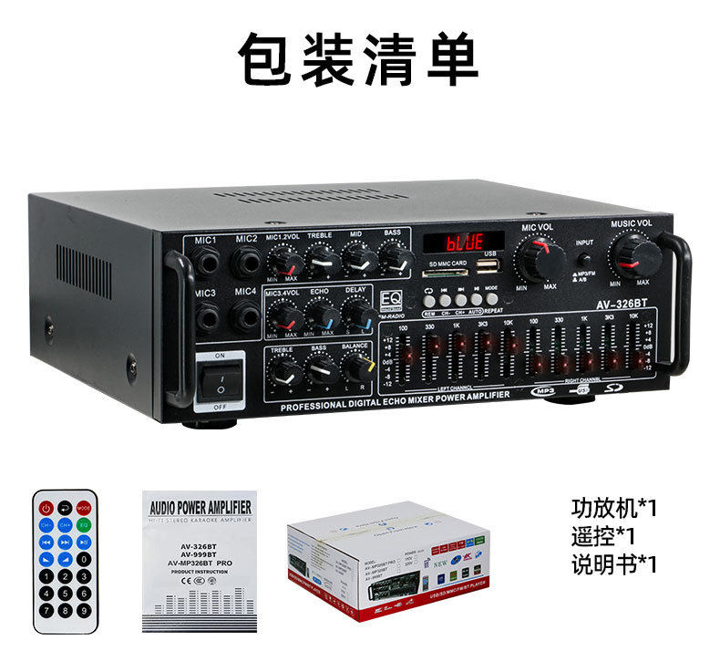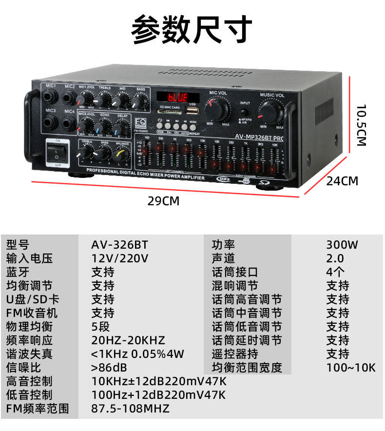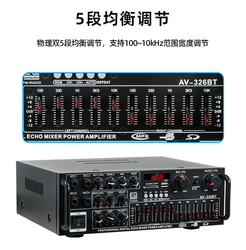 High-power home power amplifier 12V/220V Bluetooth EQ equalizer car outdoor karaoke dual-purpose power amplifier wholesale