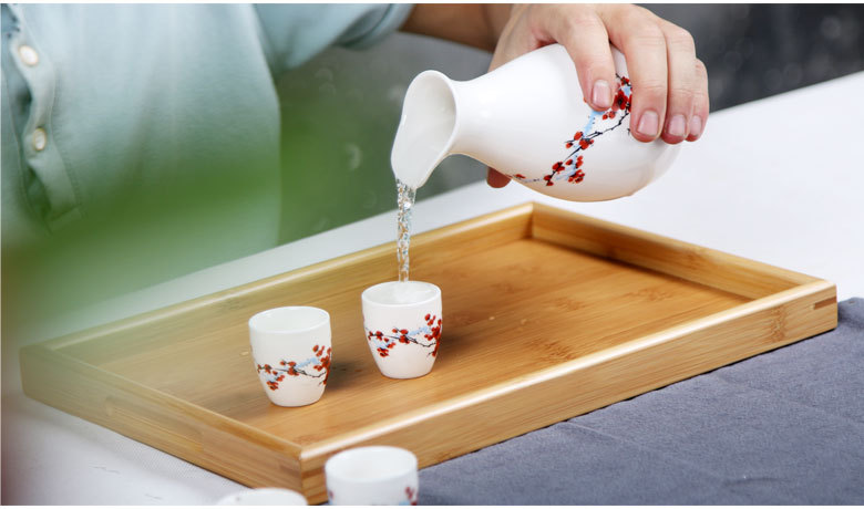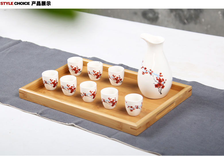 Winery warm hip flask wine dispenser blue and white box ceramic one pot eight glasses wine suit white wine glass wine pot LOGO wine container