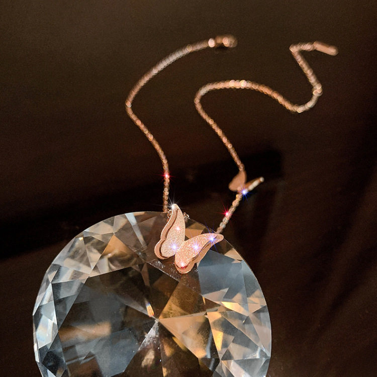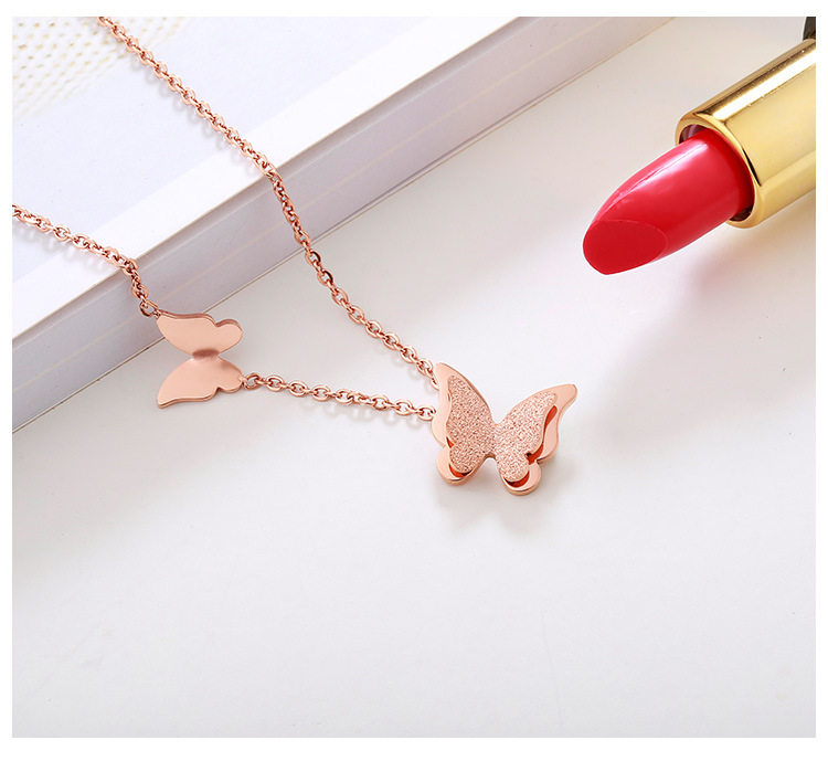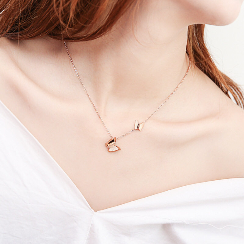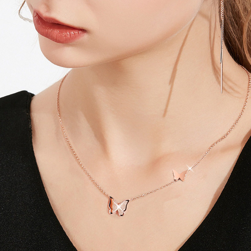 Titanium Steel 18K Butterfly Necklace Women's Rose Gold Elegant Simple Necklace Clavicle Chain Women's Short Pendant Cross-border Explosions