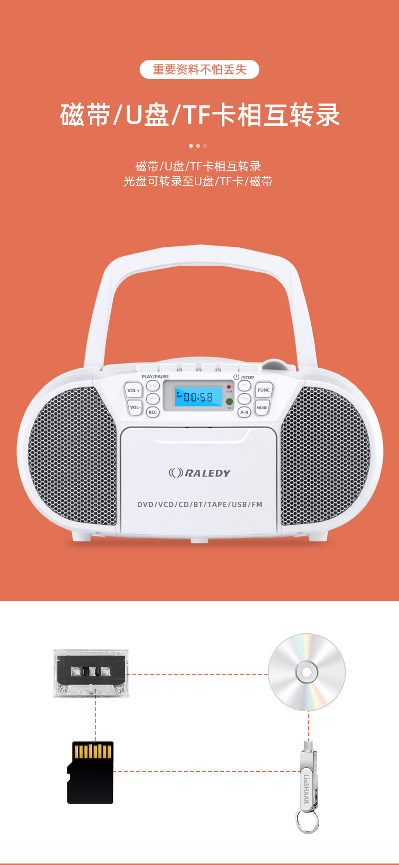 Cross-border Amazon Grady 519 Portable Tape DVD/CD Player Repeater Including Bluetooth U Disk CD