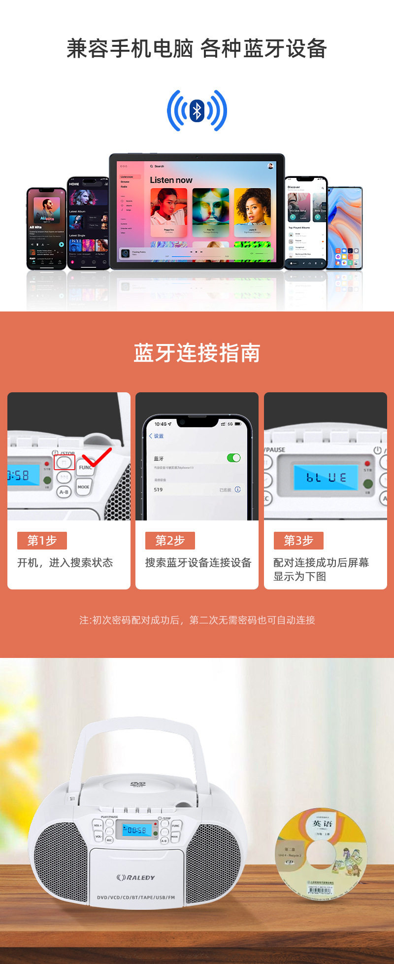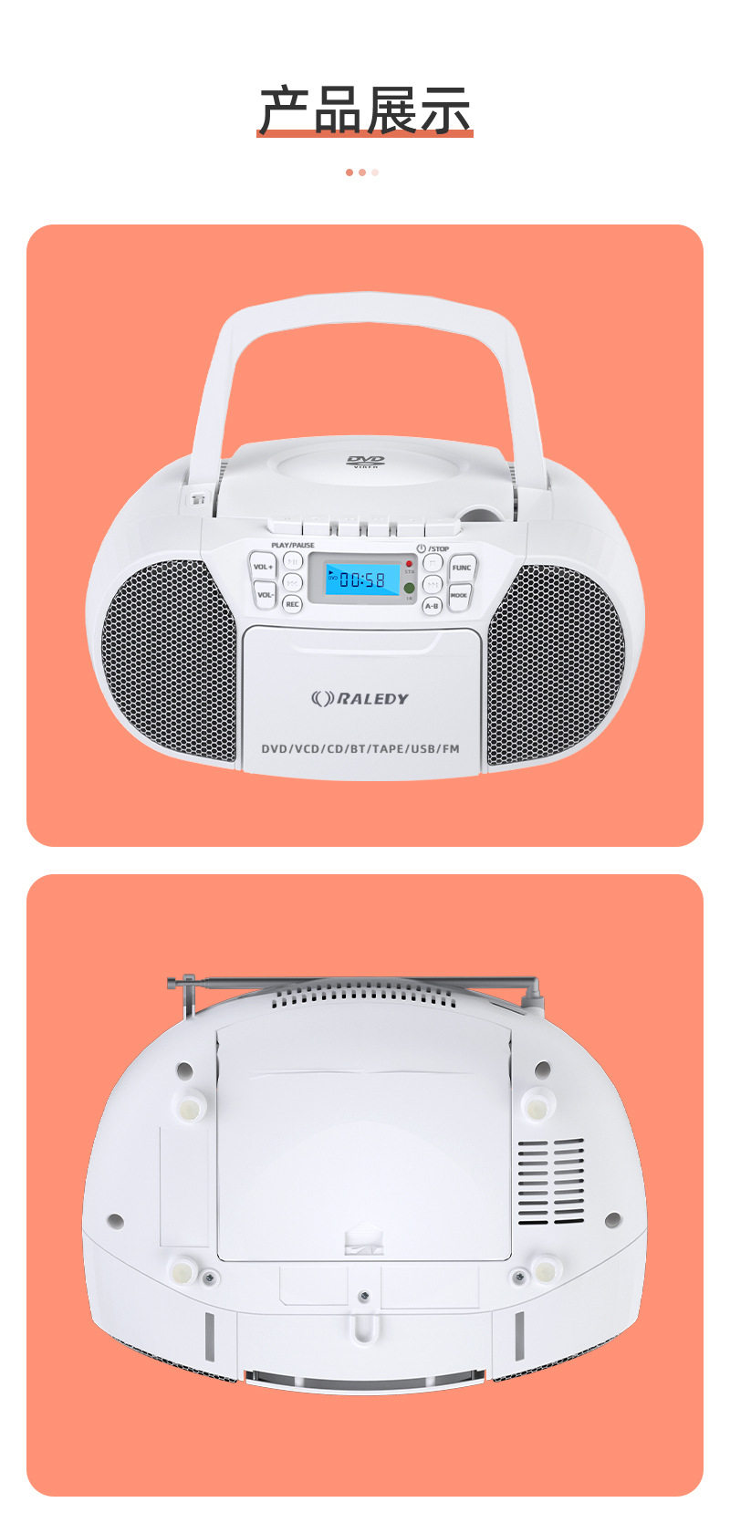 Cross-border Amazon Grady 519 Portable Tape DVD/CD Player Repeater Including Bluetooth U Disk CD
