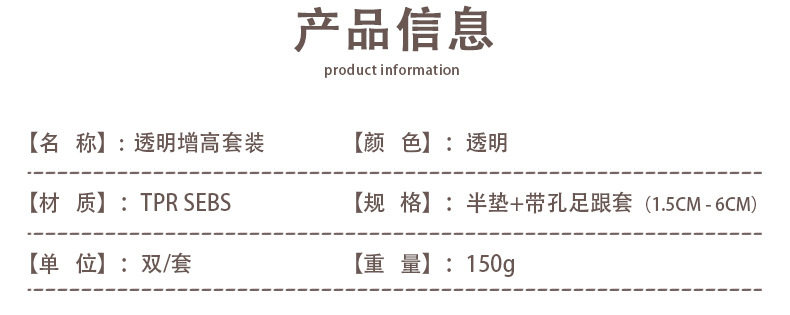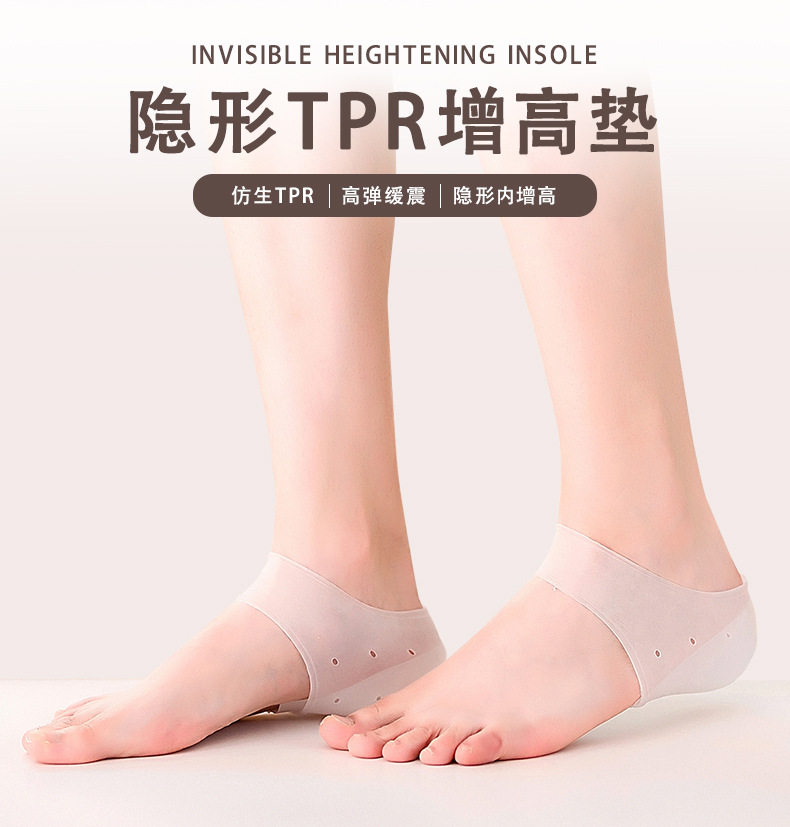 Invisible Inner Heightening Insole Transparent Bionic Silicone Gel Heightening Socks Set Shock-Absorbing Thickened Heel Cushion Cover Wholesale