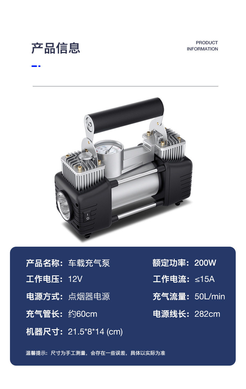 Car air pump double cylinder 150W air pump 80 cylinder car car multi-function automatic charging and stopping high pressure tire