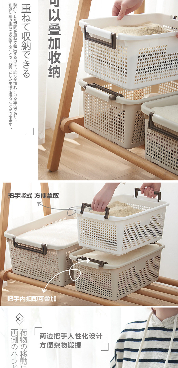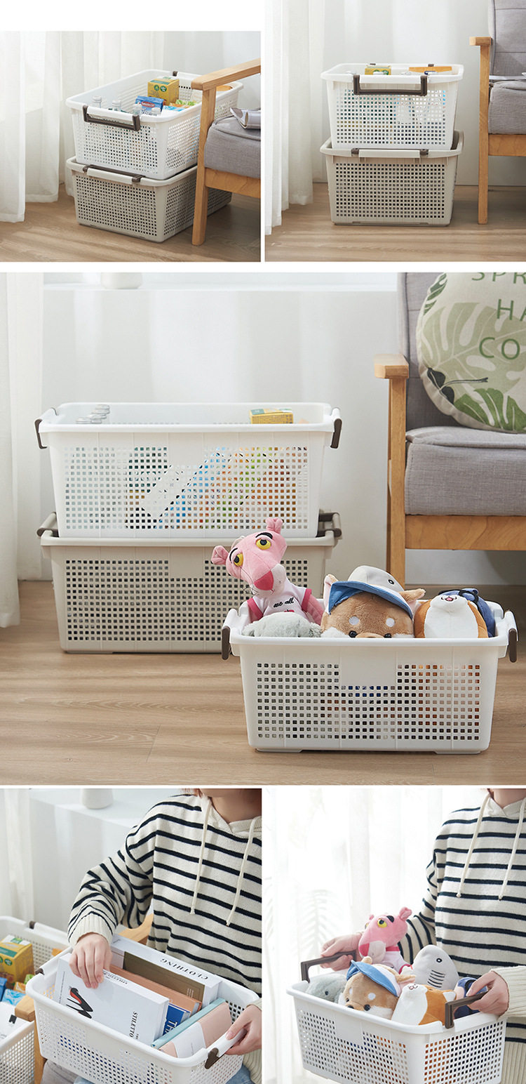 Wholesale Japanese Stacked Storage Basket Cabinet Sundries Plastic Storage Basket Bathroom Hollow Basket Snack Toy Storage Box