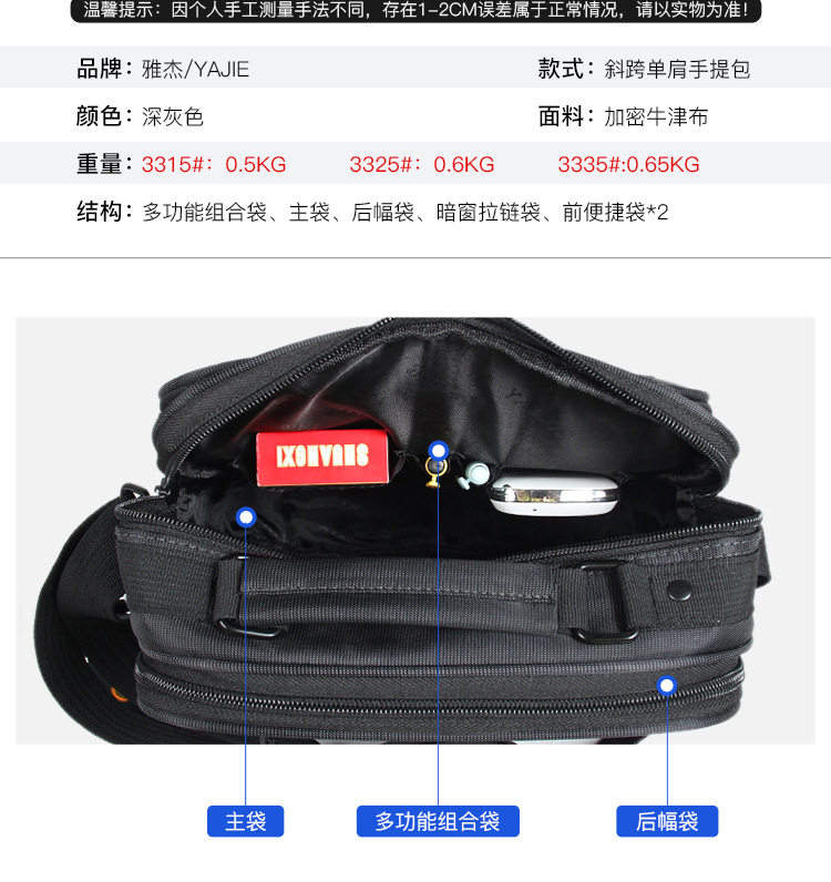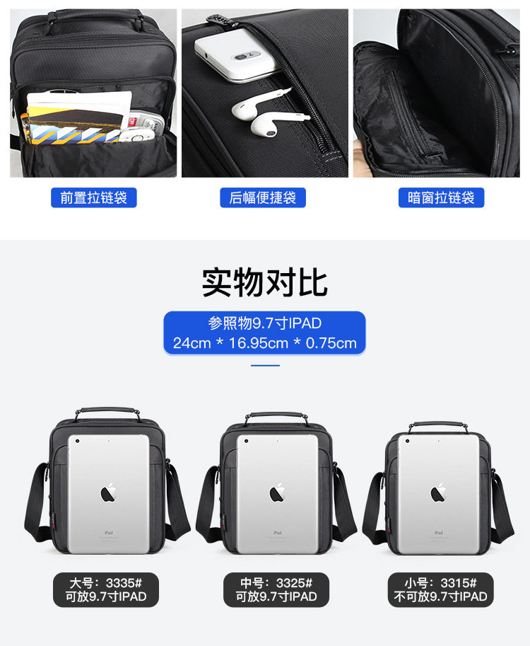 Oxford Cloth Shoulder Bag Vertical Business Men's Bag Casual Handbag Crossbody Sports Tablet Computer Bag Thickened Satchel