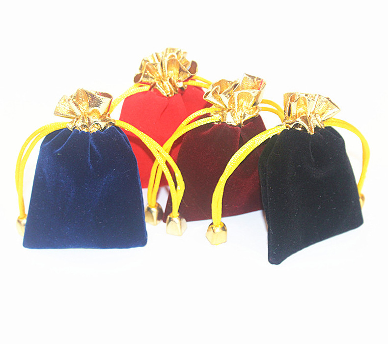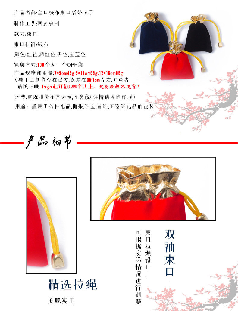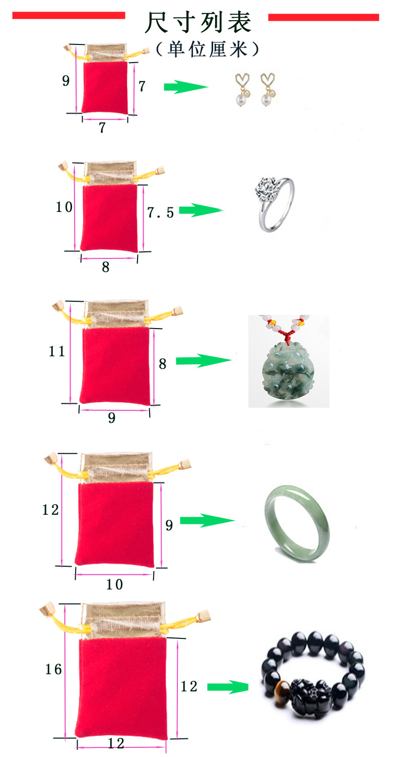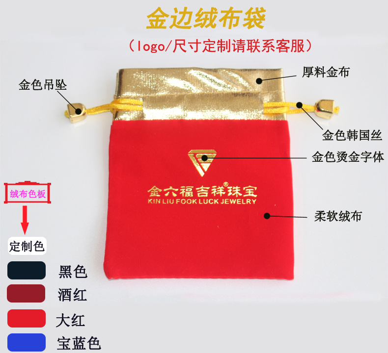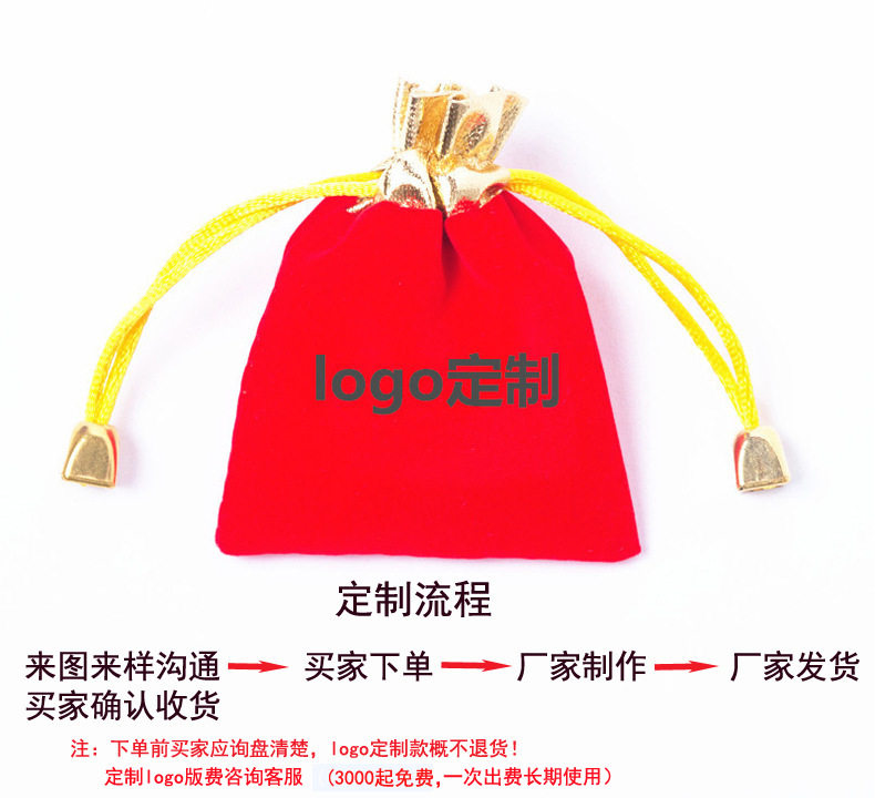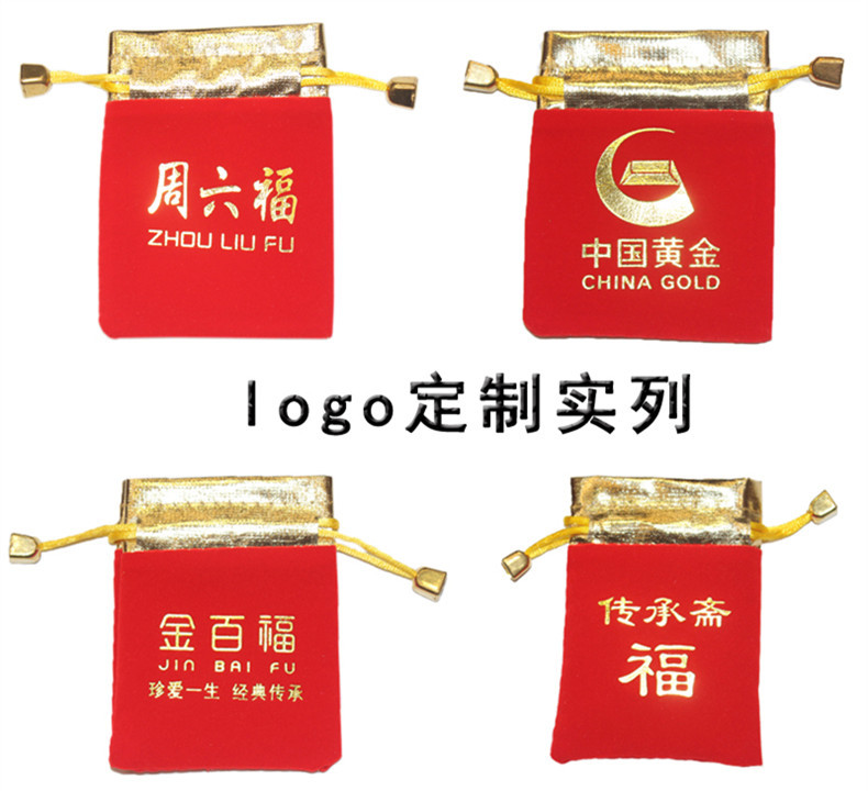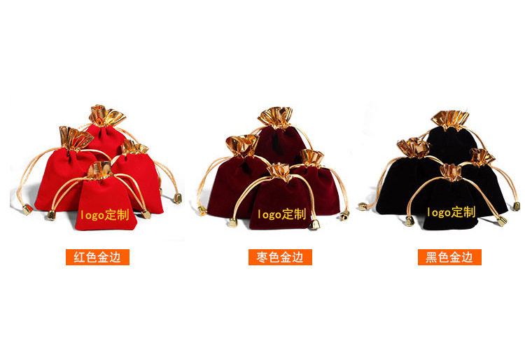 Wholesale In-Stock Jewelry Boxes, Gold-Mouth Velvet Jewelry Bags, Red Small Accessories Drawstring Bags, Bracelet Drawstring Lucky Bags with Logo