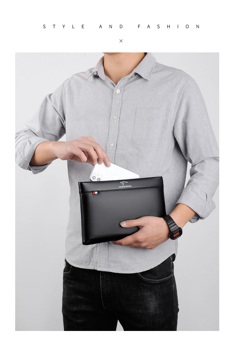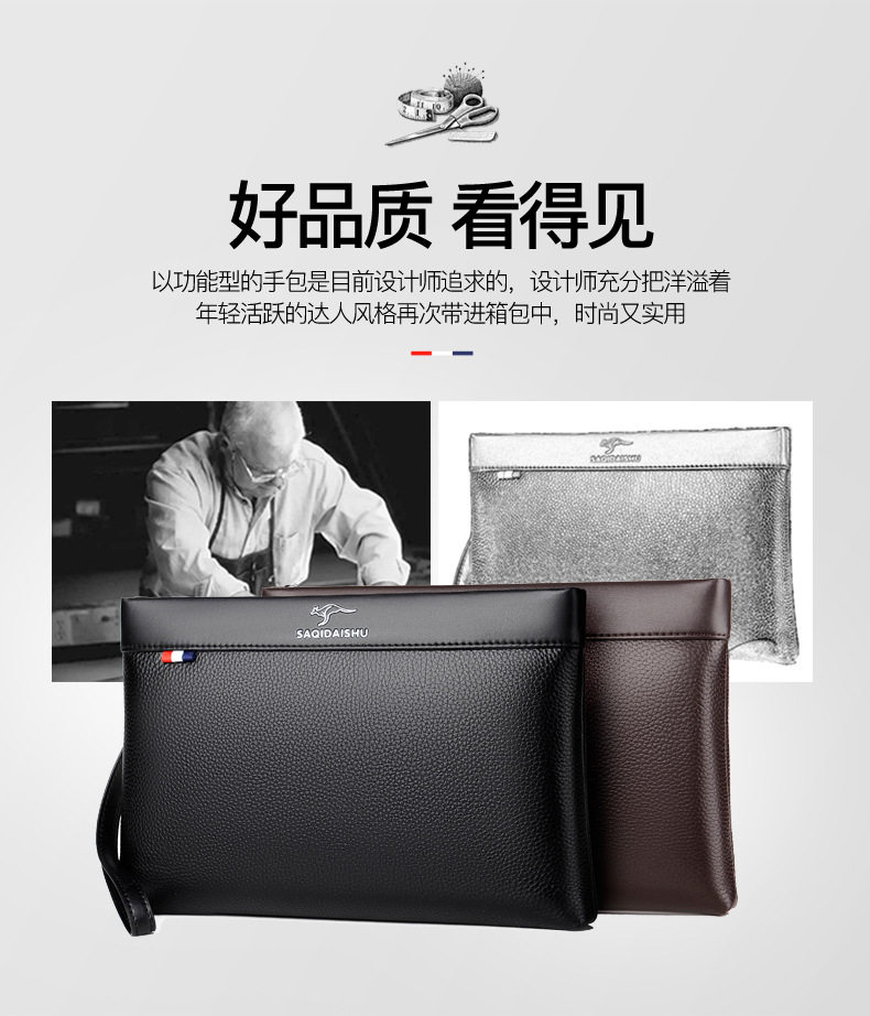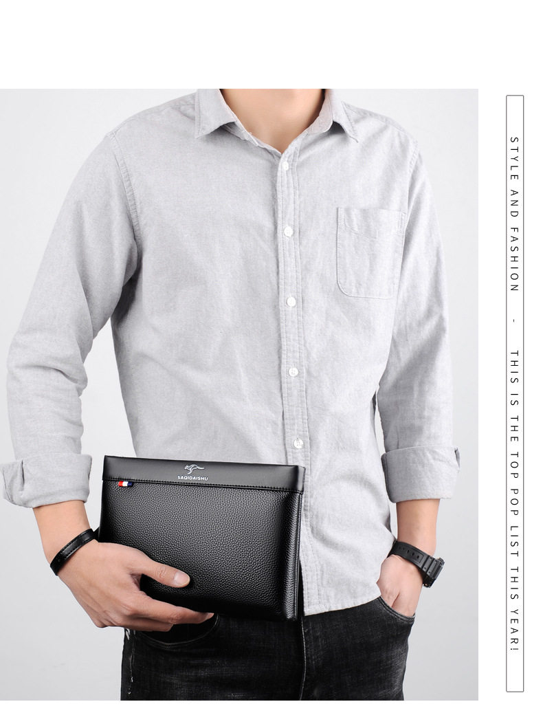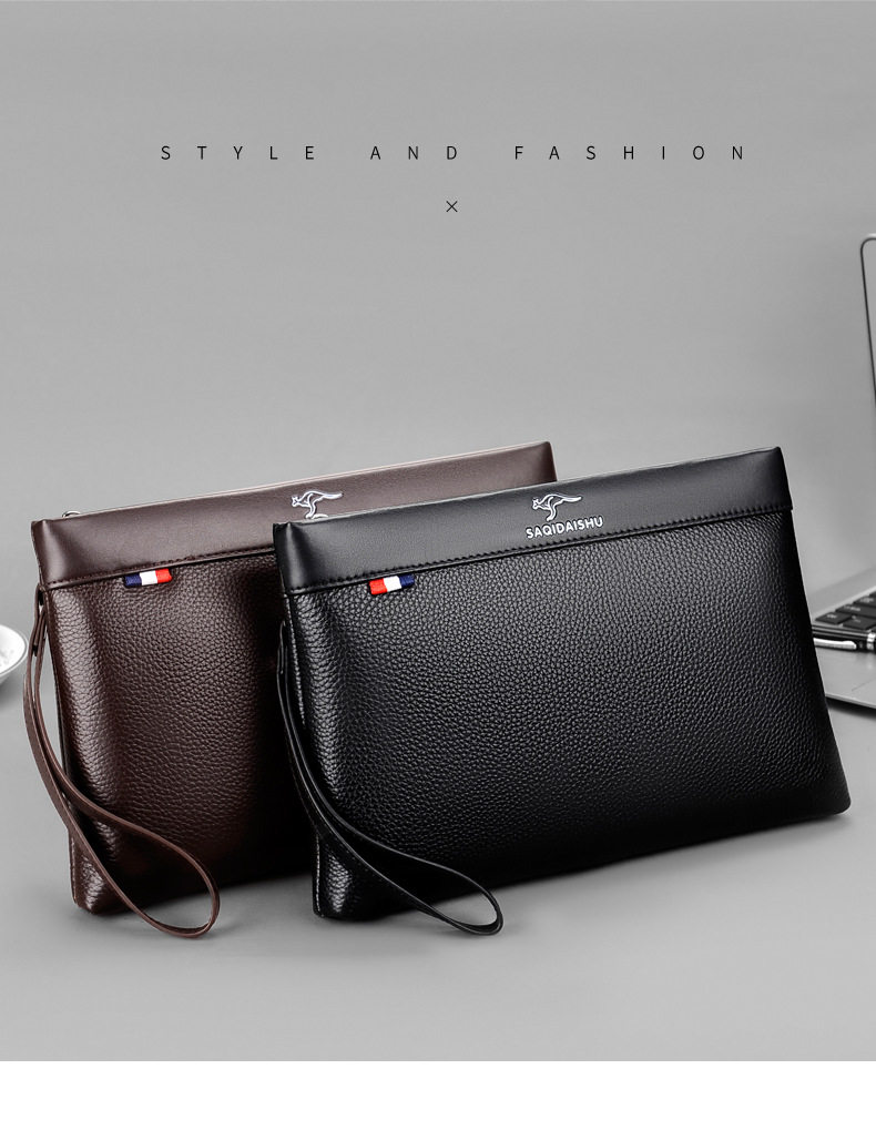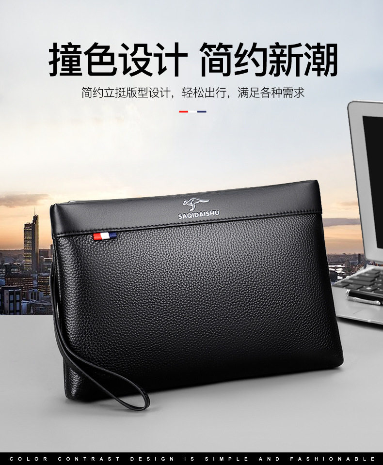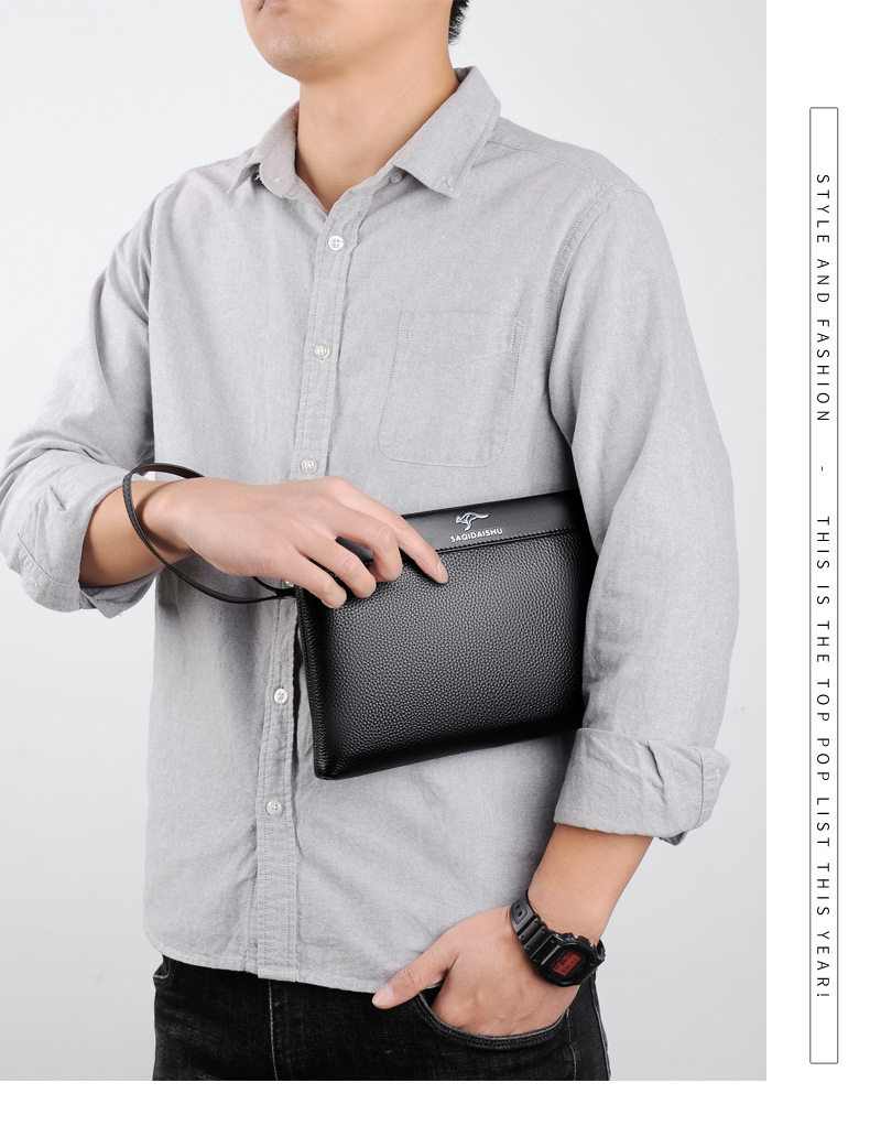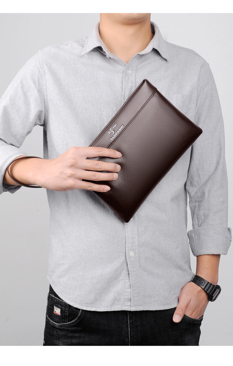 Sachi Kangaroo Men's New Genuine Leather Clutch Bag Casual Travel First Layer Cowhide Envelope Coin Purse