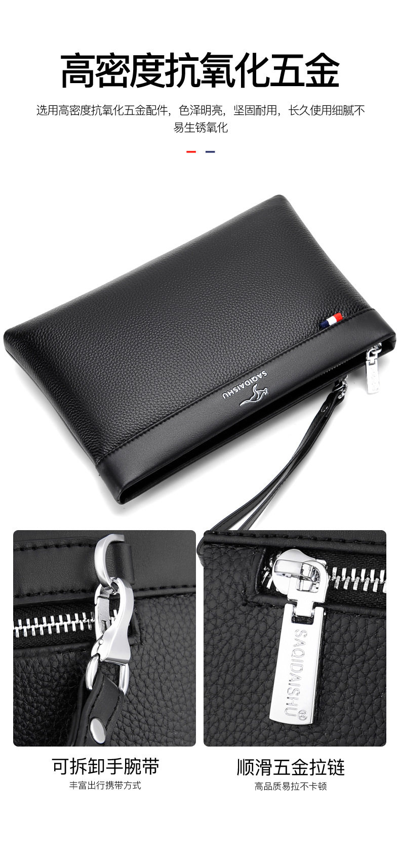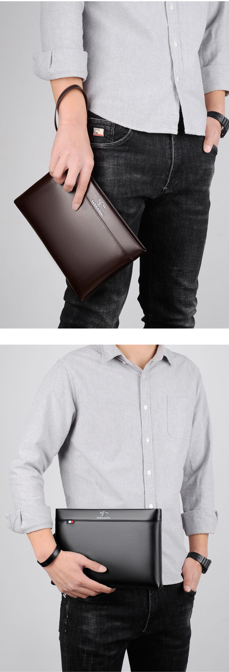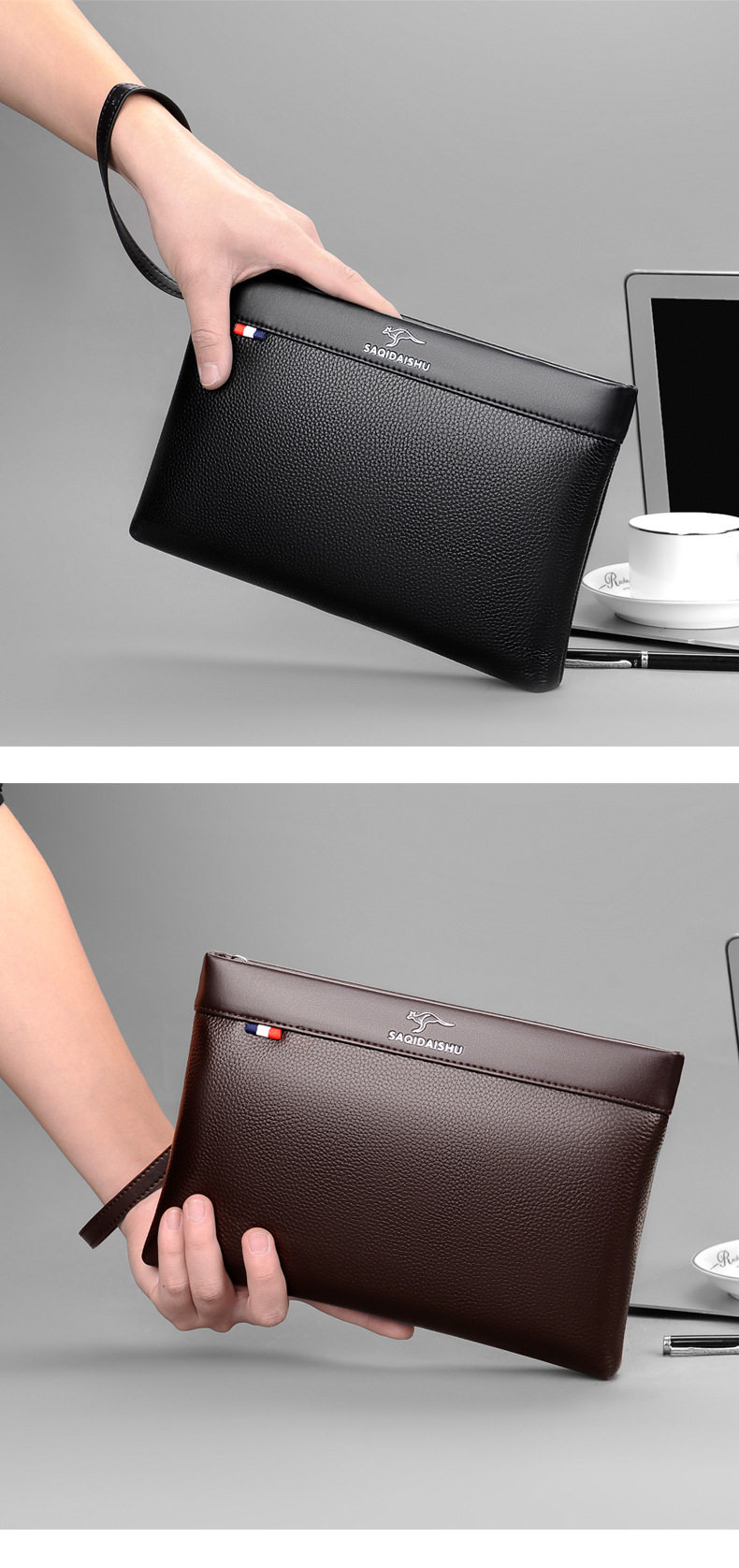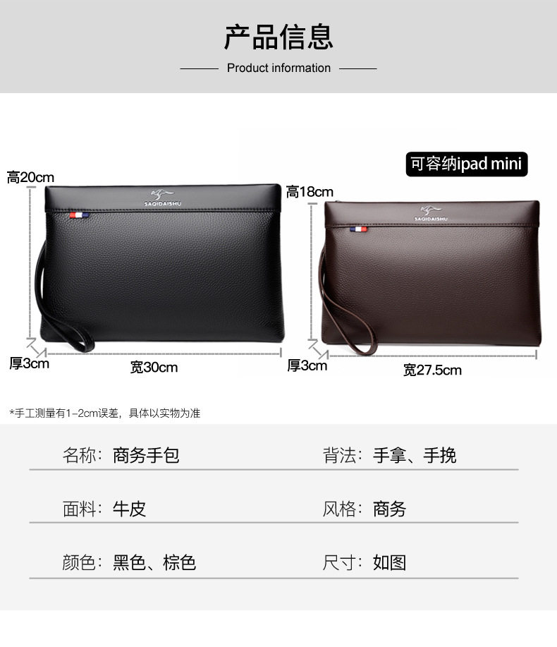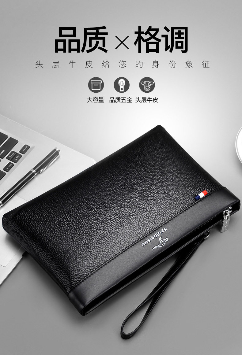 Sachi Kangaroo Men's New Genuine Leather Clutch Bag Casual Travel First Layer Cowhide Envelope Coin Purse