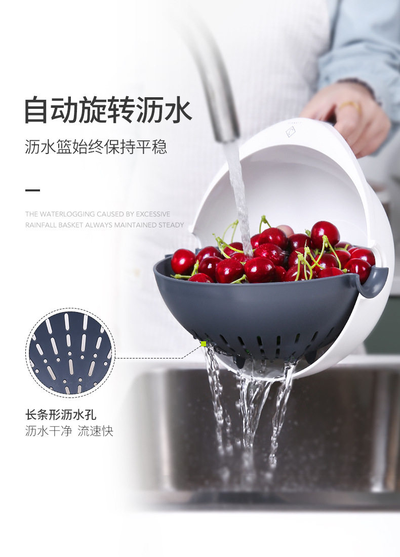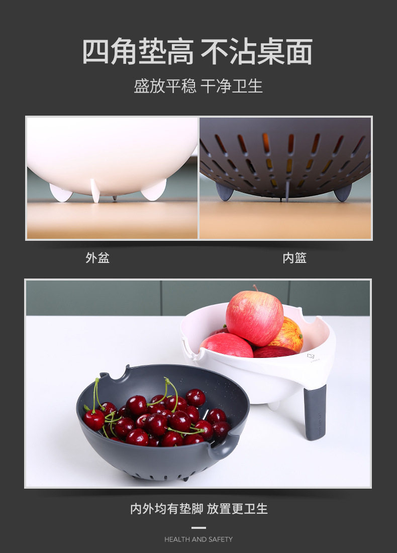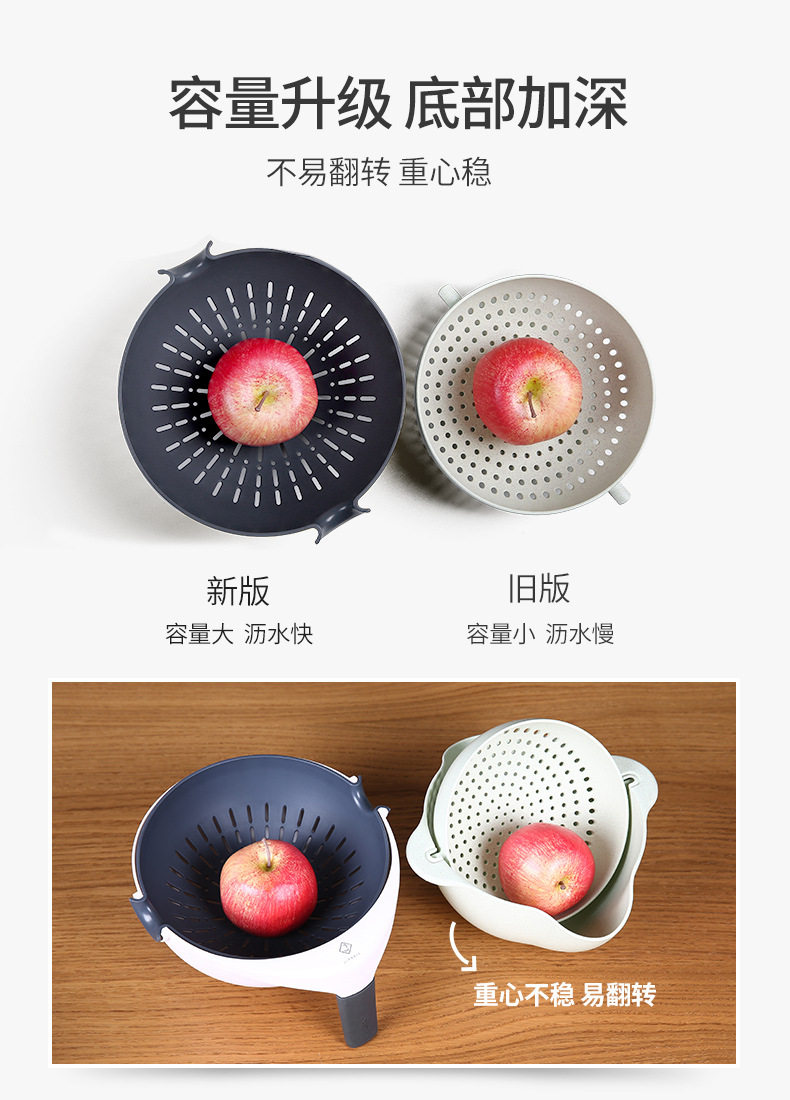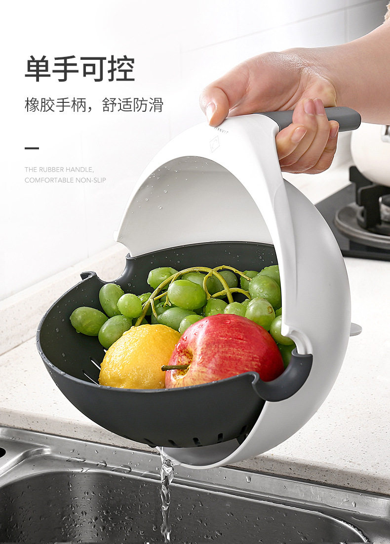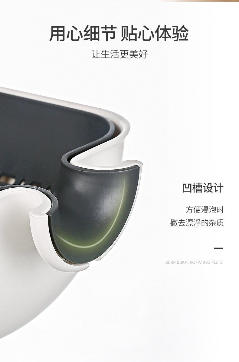Rotating vegetable washing basin drain basket double-layer washing plate rice washing multi-function water filter household kitchen basket drain plastic artifact