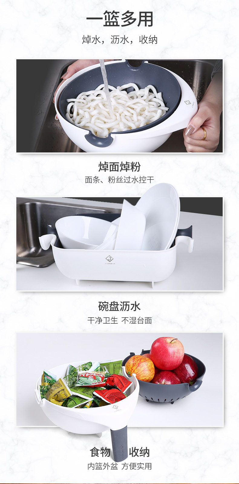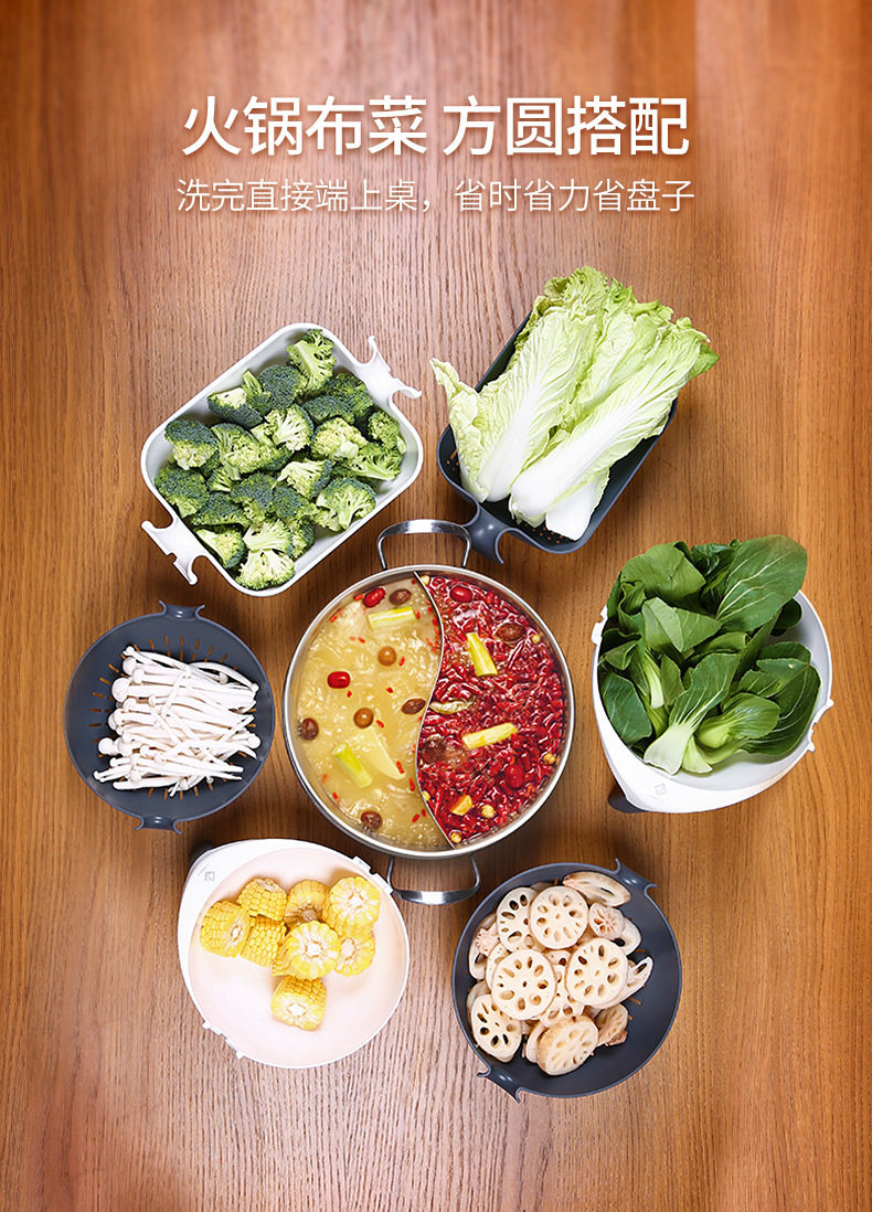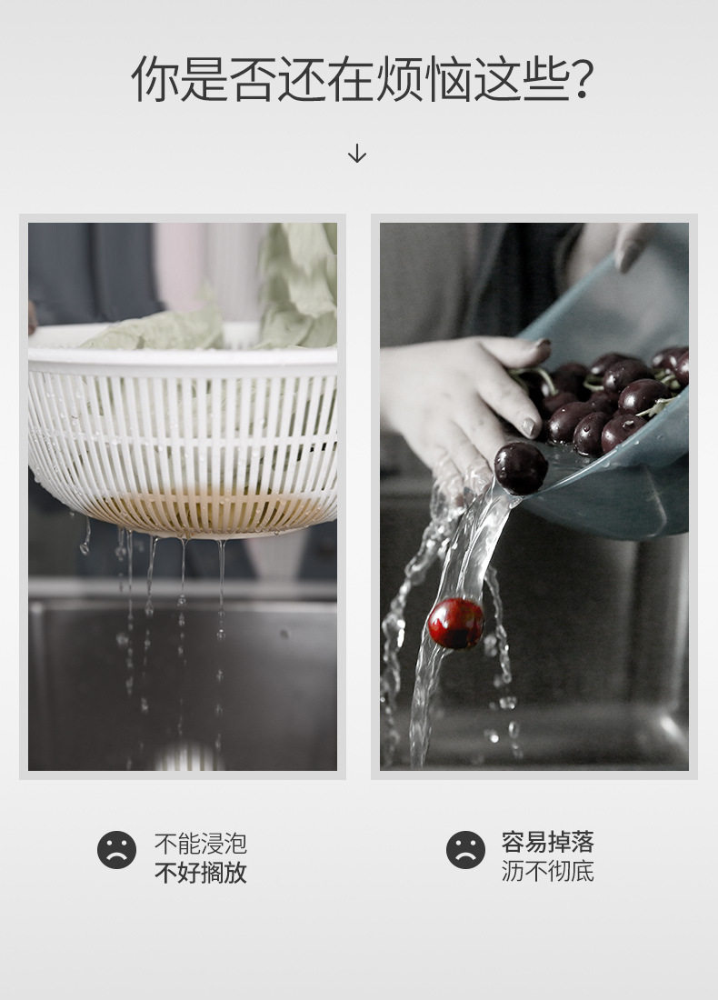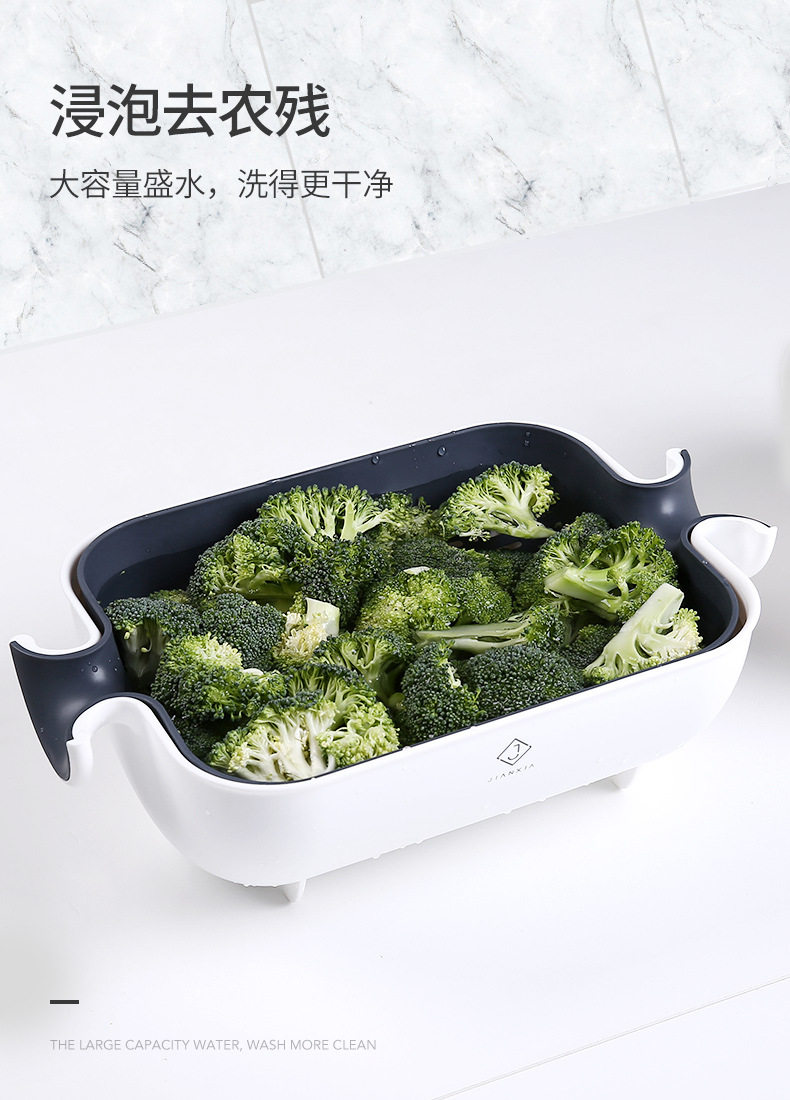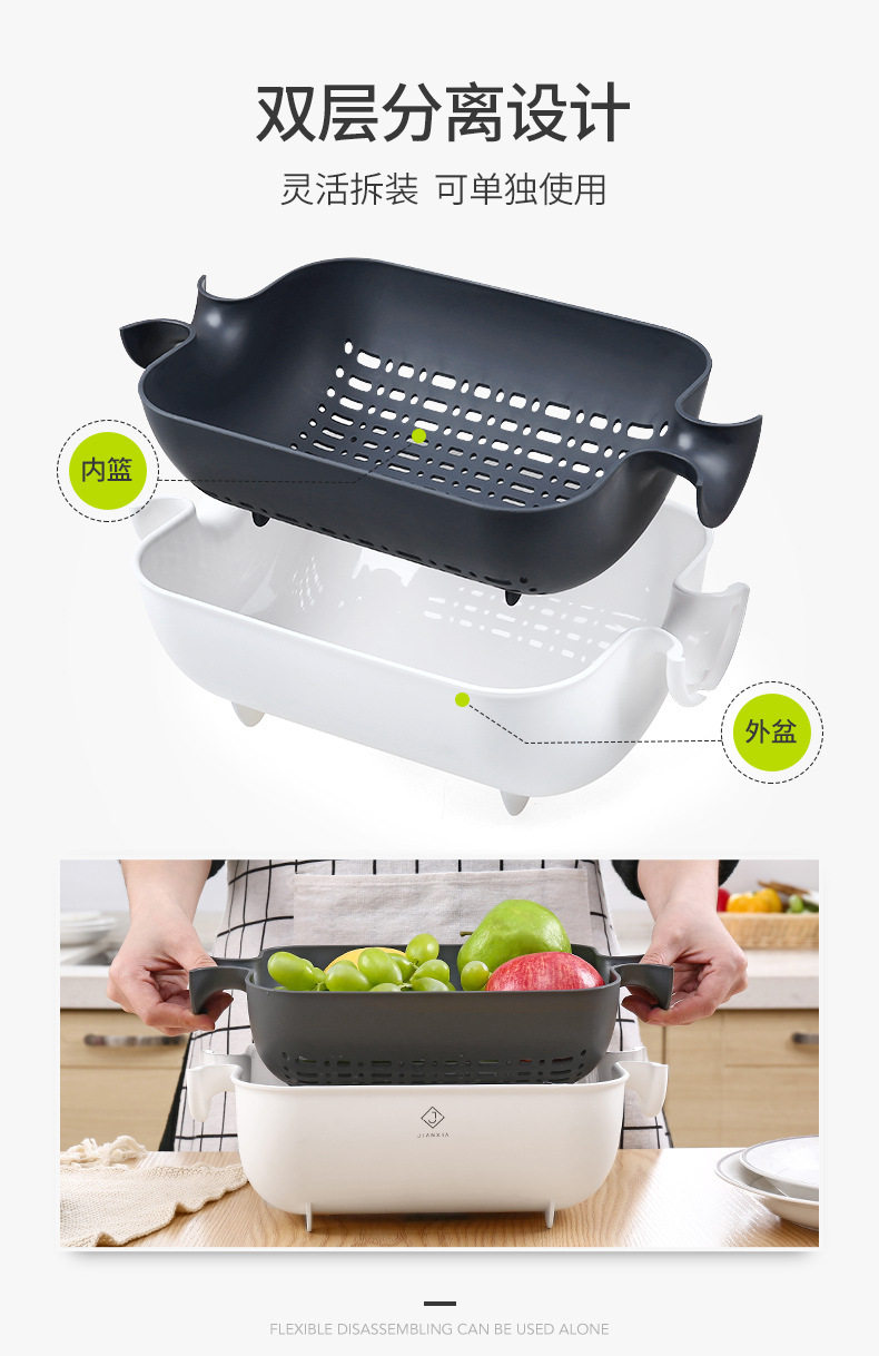 Rotating vegetable washing basin drain basket double-layer washing plate rice washing multi-function water filter household kitchen basket drain plastic artifact