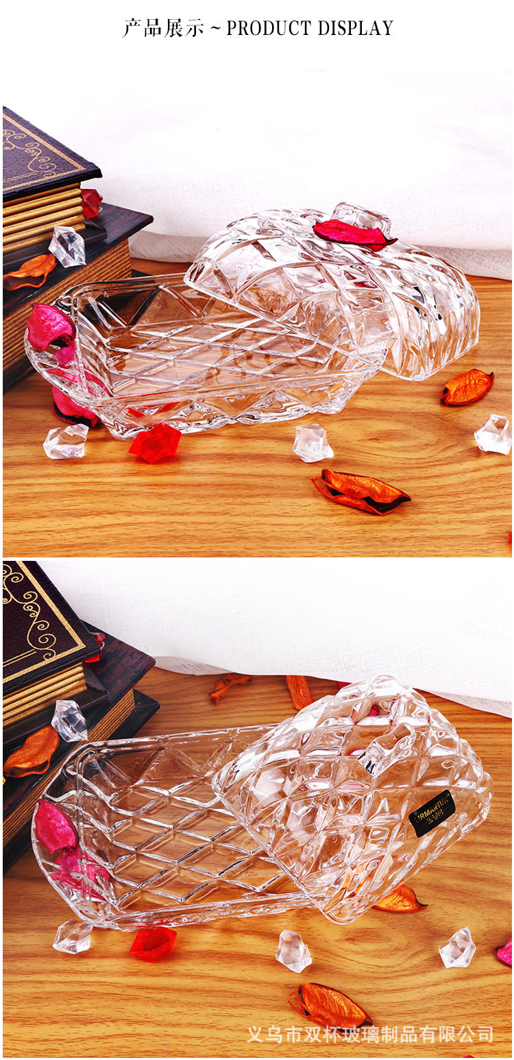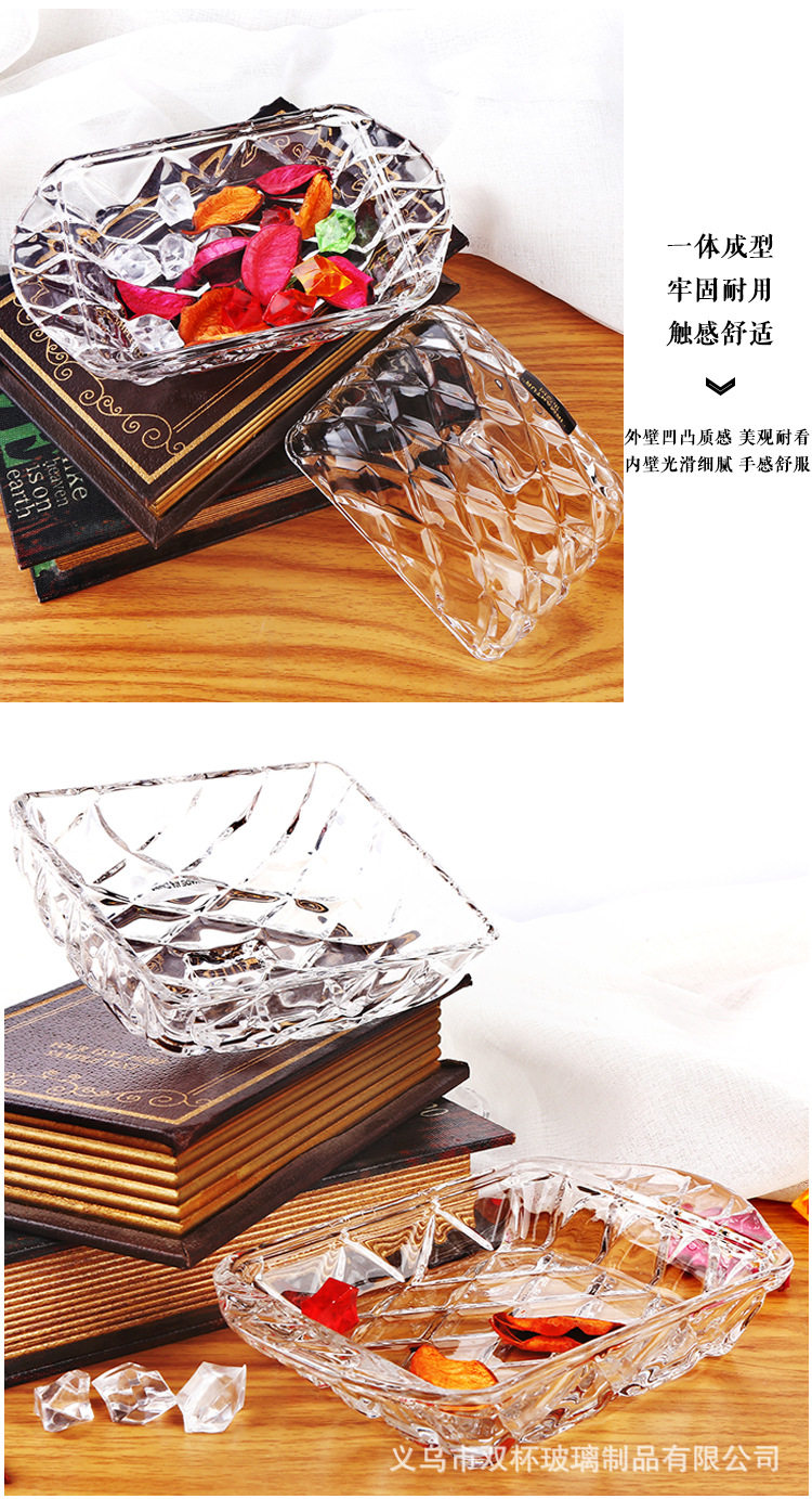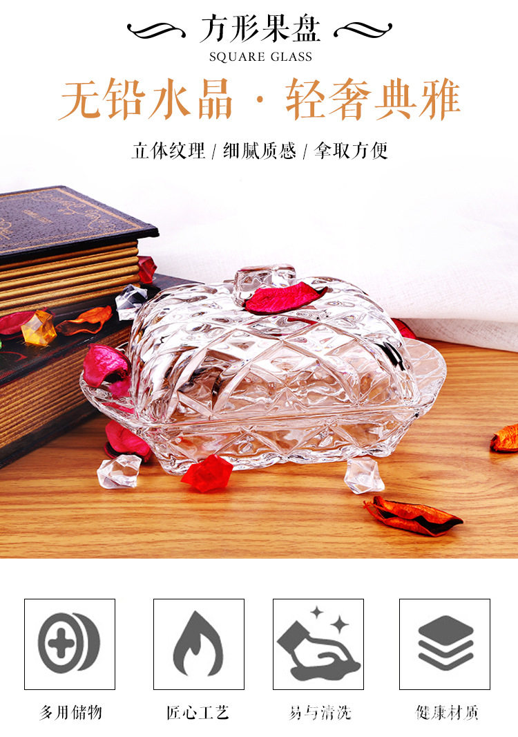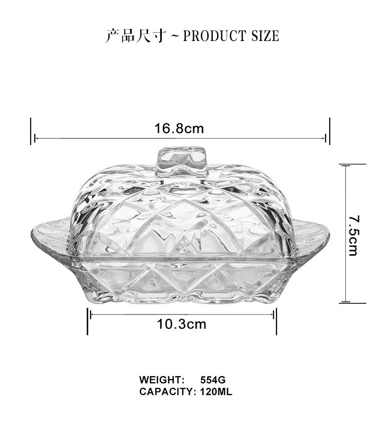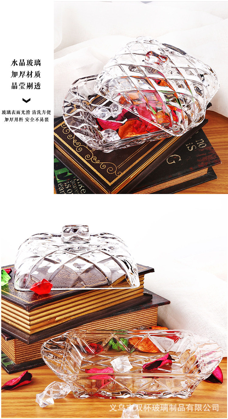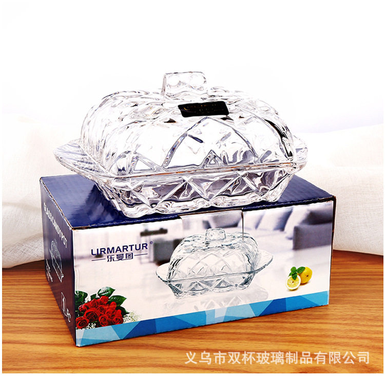 Nordic ins Embossed Glass Butter Plate Rectangular Butter Box Dustproof Cheese Dessert Tray with Lid Cake Plate