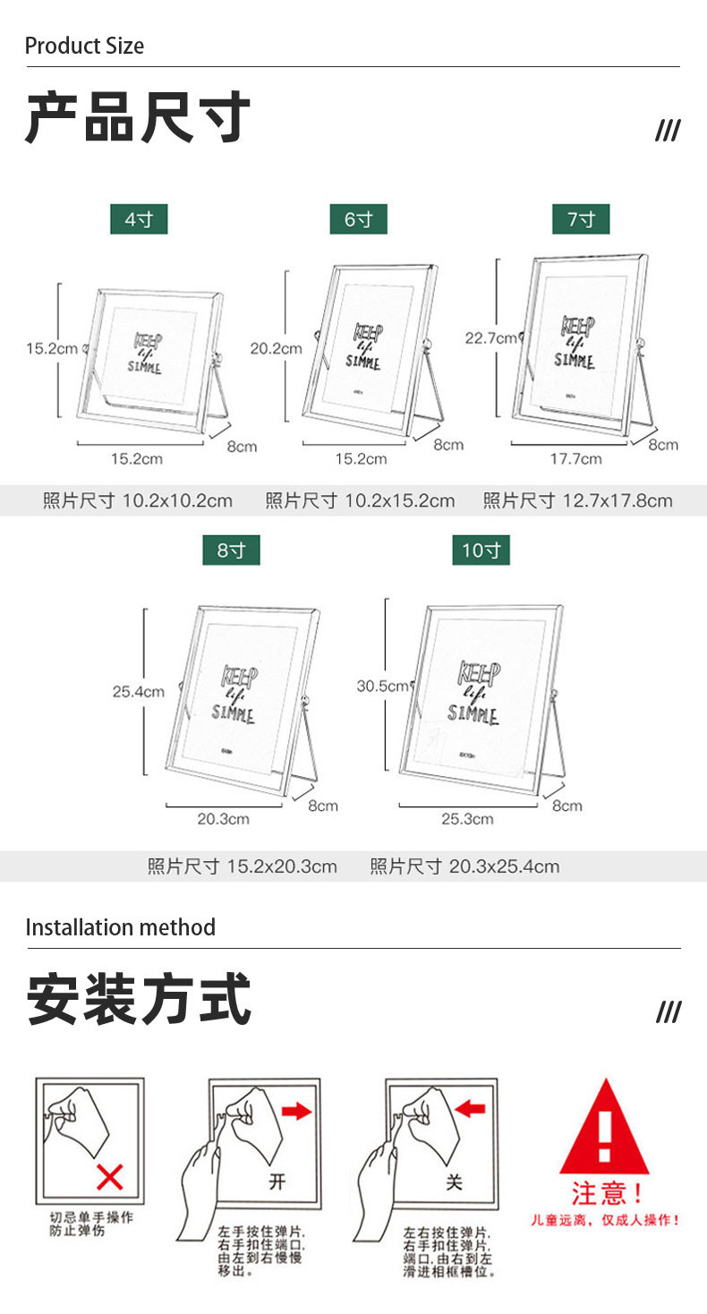 Factory Direct Supply Creative Scandinavian 6inch Iron Art Photo Frame Table Photo Frame Double-Sided Photo Frame Hydroponic Plant Photo Frame Wholesale