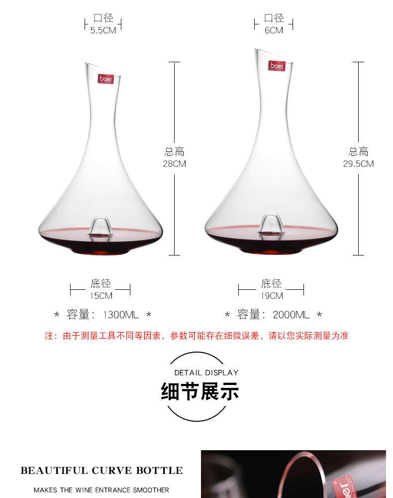 | Specification size | Small size decanter 1300ml,Large decanter 2000ml |