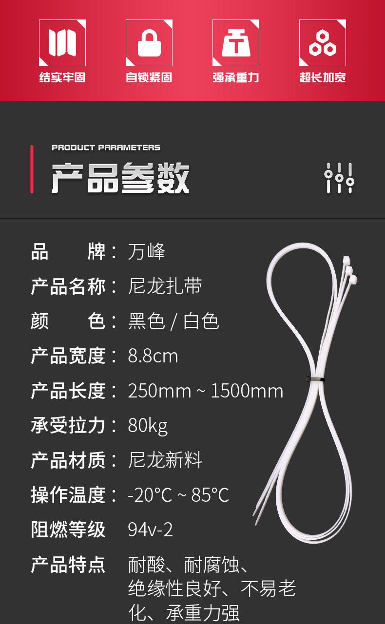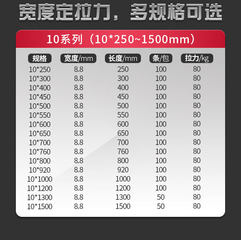 Lengthened and widened tie nylon tie plastic tie 10*1500*1300*1200*1000