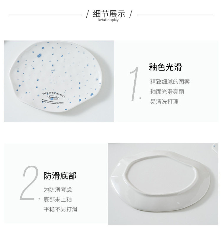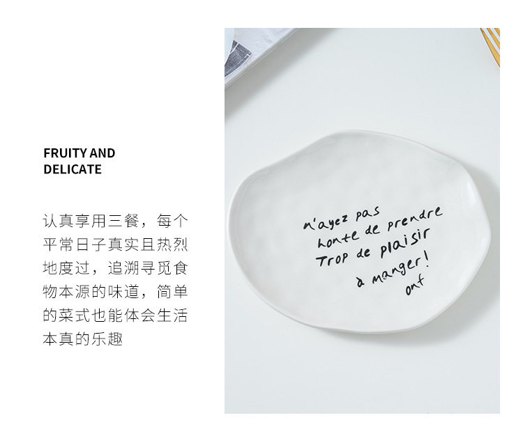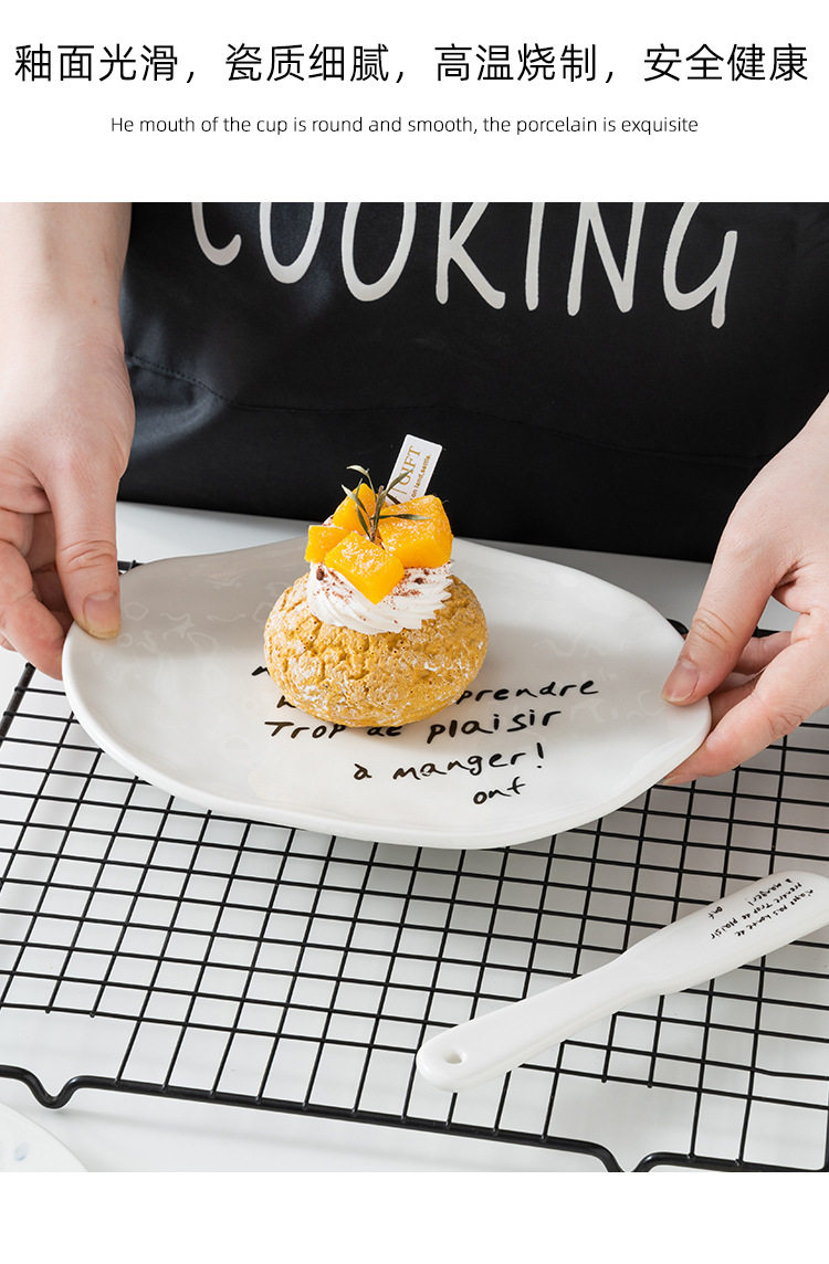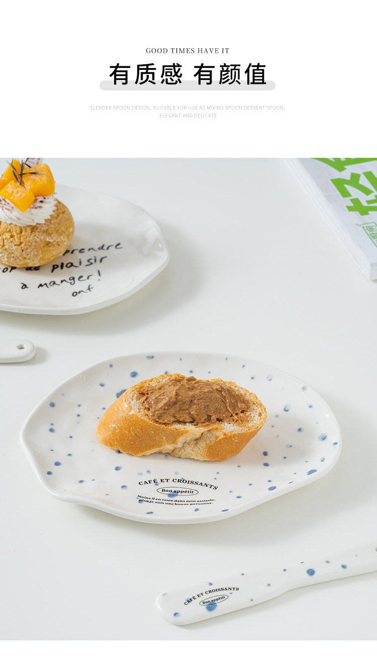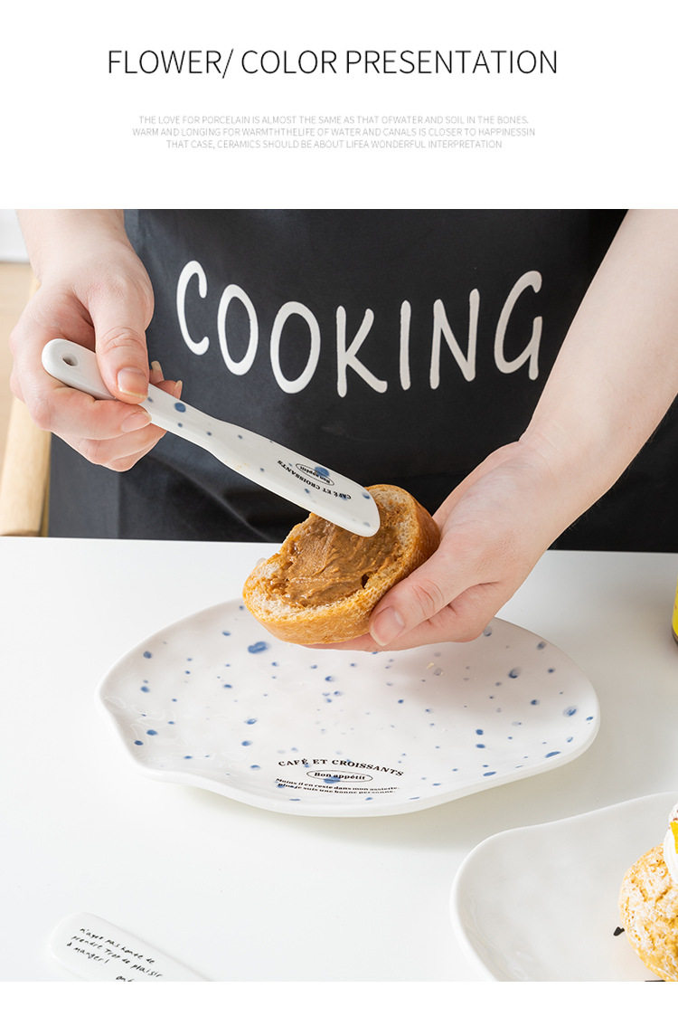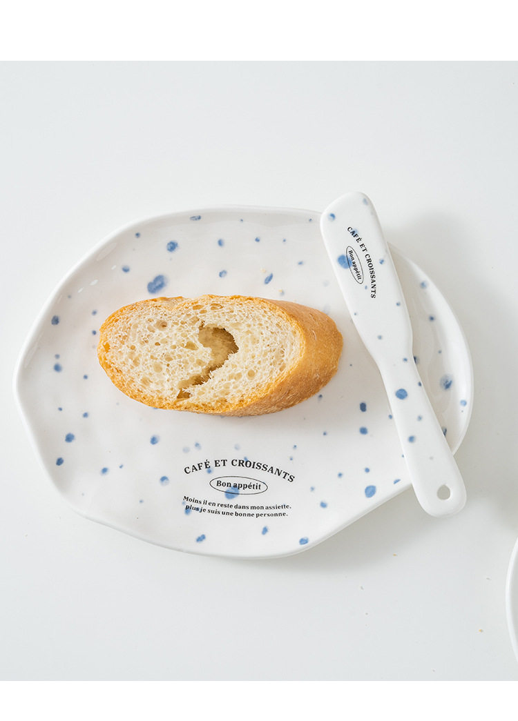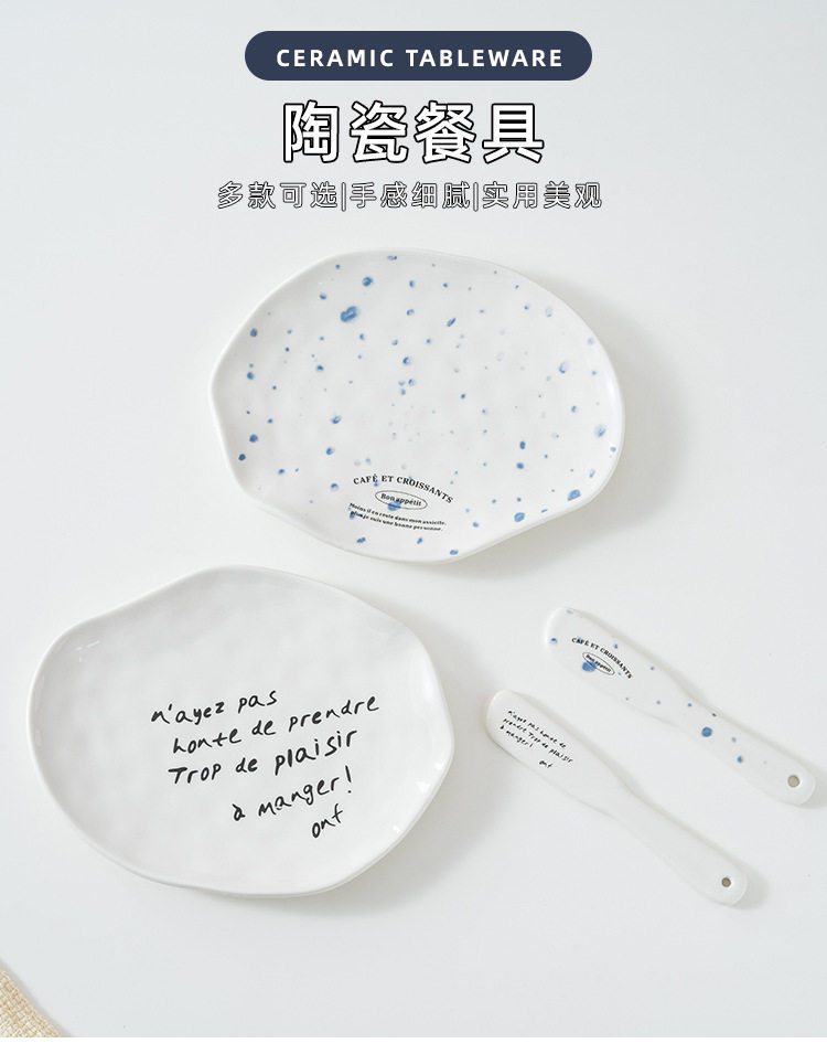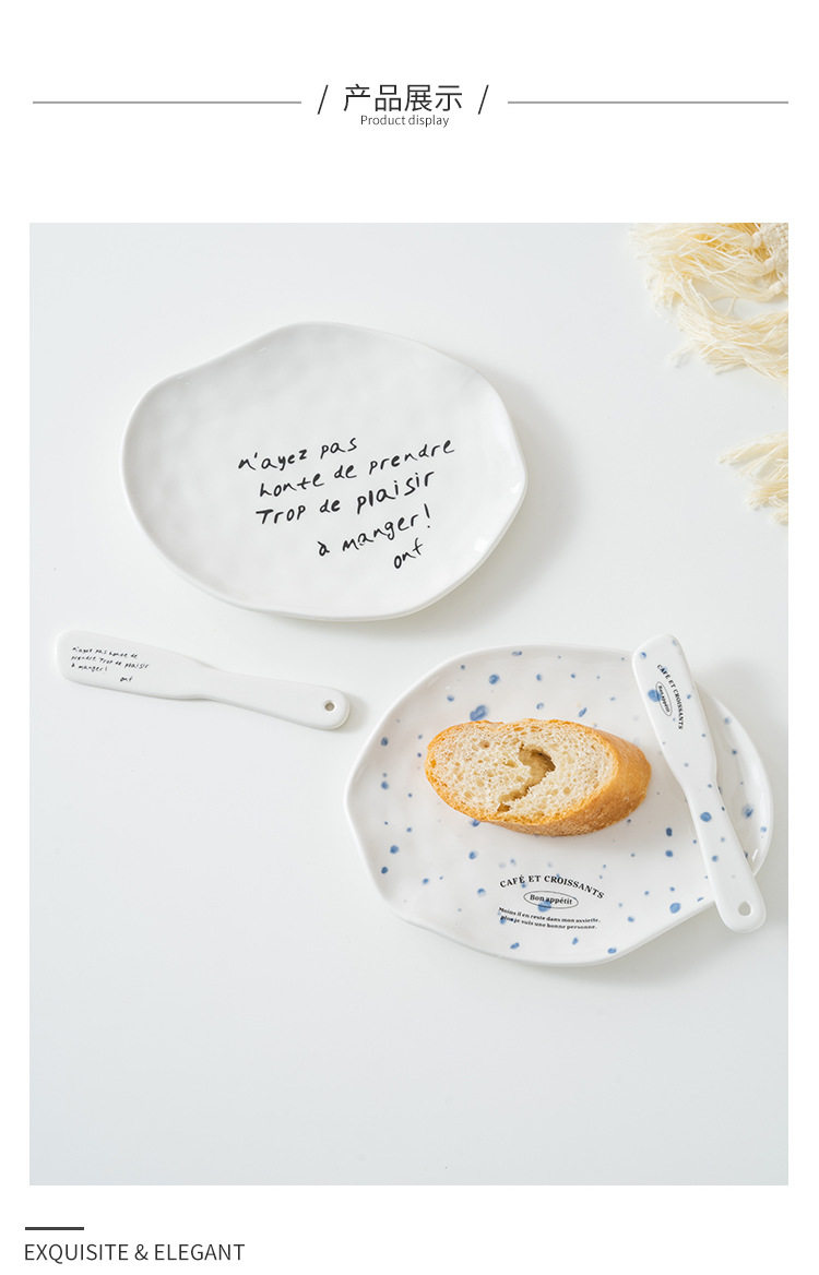 Korean blogger same style niche irregular dessert plate simple letter butter jam knife ceramic Western cheese plate