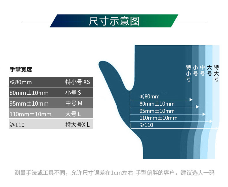 | Specifications and models | GPNBC trumpet-S code * Black thick nitrile,GPNBC medium-M * Black thick nitrile,GPNBC large-L code * Black thick nitrile,GPNBC Plus Number-XL Code * Black Thickened Nitrile,APFNCHD trumpet-S * dark blue durable nitrile,APFNCHD medium-M * dark blue durable nitrile,APFNCHD large-L * dark blue durable nitrile,APFNCMD trumpet-S code * light blue nitrile examination gloves,APFNCMD medium-M code * light blue nitrile examination gloves,APFNCMD large-L code * light blue nitrile examination gloves,TLFVMD special trumpet-XS code * milky white thickened latex examination gloves,TLFVMD trumpet-S code * milky white thickened latex examination gloves,TLFVMD medium-M code * milky white thickened latex examination gloves,TLFVMD large-L yard * milky white latex check gloves,TLFT trumpet-S code * milky white economical latex,TLFT medium-M code * milky white economical latex,TLFT large-L code * milky white economical latex,APFGWC trumpet-S code * Blue economical nitrile,APFGWC medium-M code * Blue economical nitrile,APFGWC large-L code * Blue economical nitrile,GPX3KRT trumpet-S code * standard PVC,GPX3KRT medium-M code * standard PVC,GPX3KRT large-L code * standard PVC,PGLOVE-2 Average Size * |