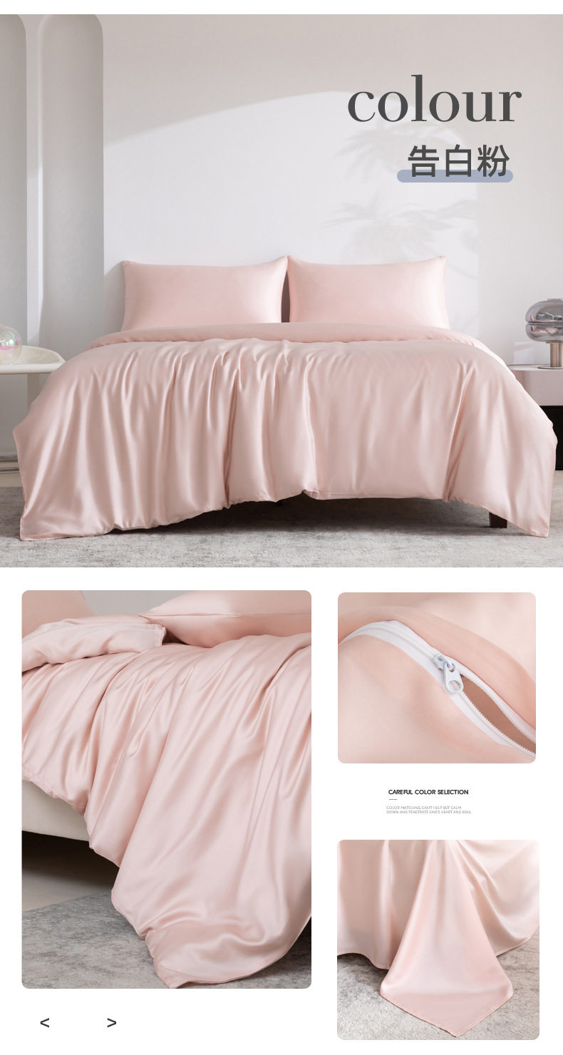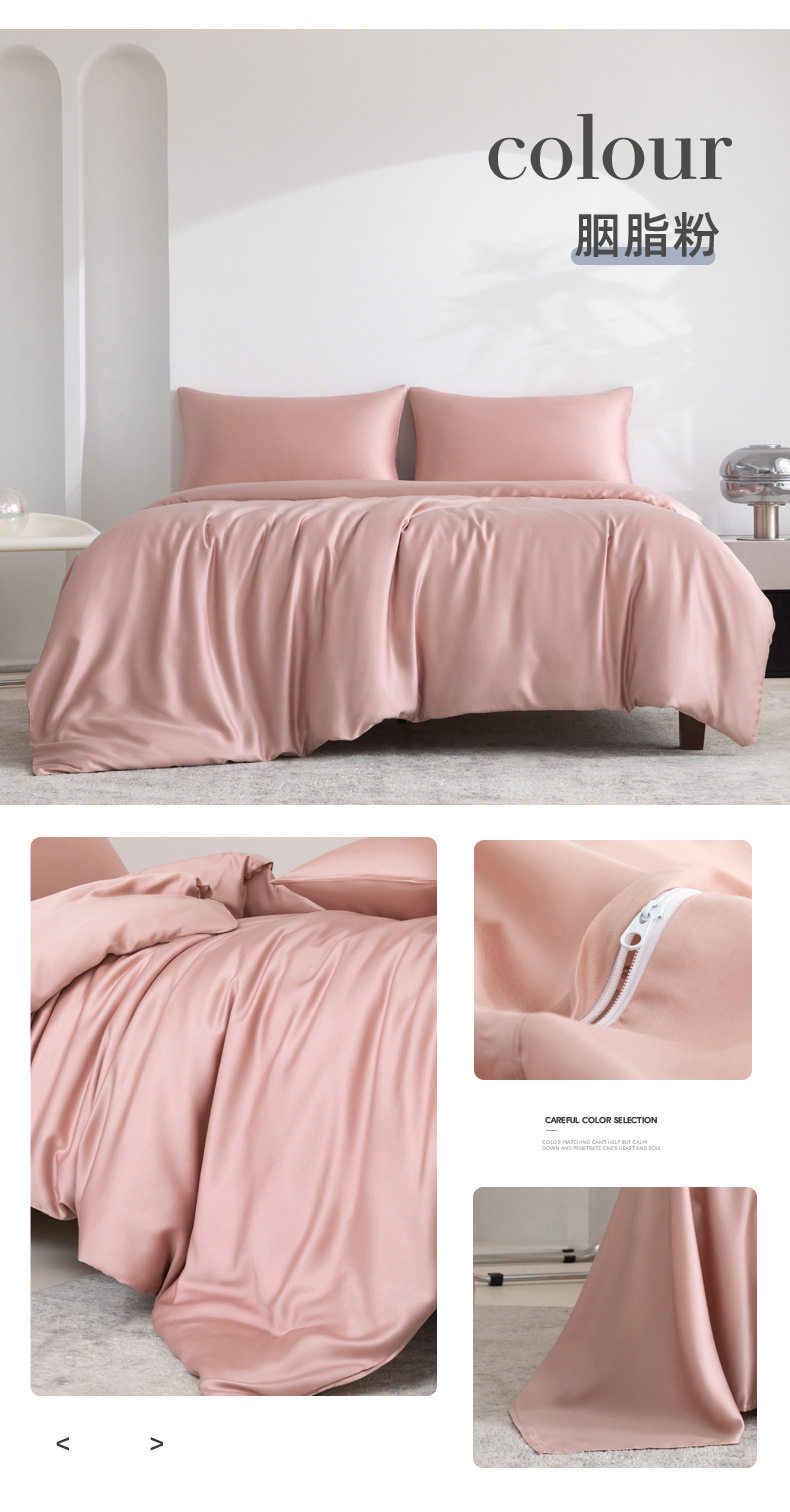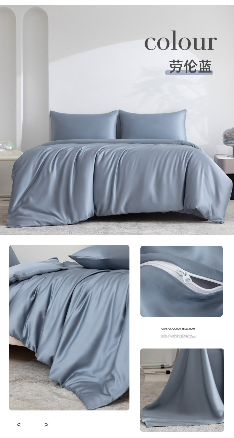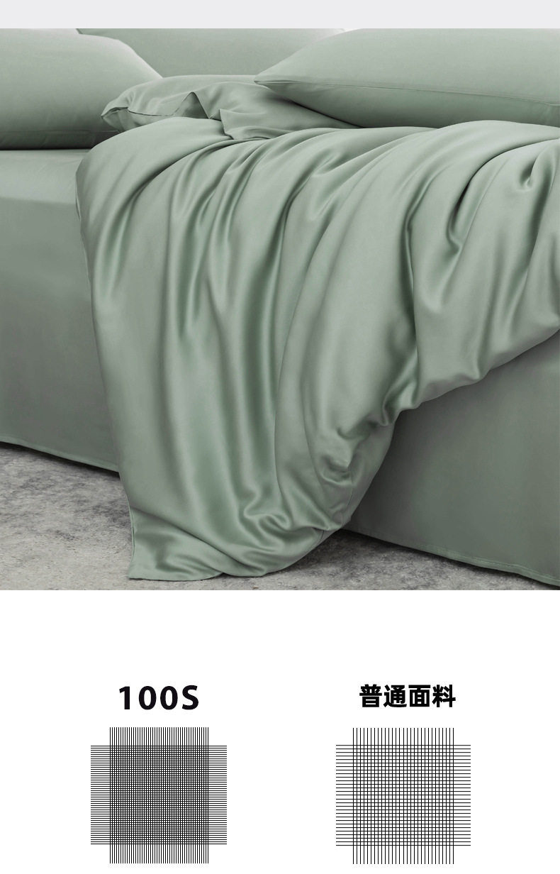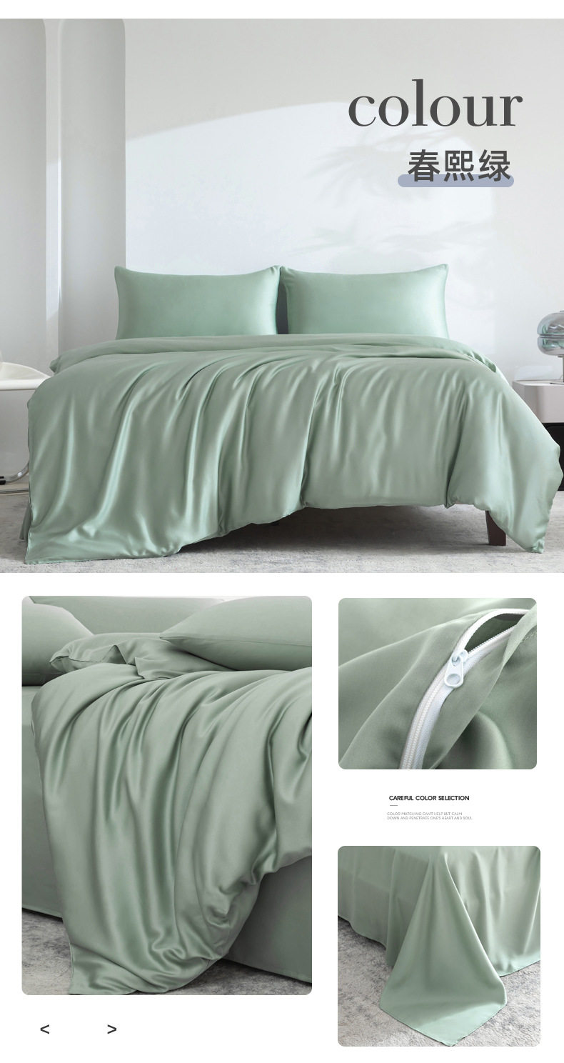 Spring and summer class A 100 solid color Lanjing Tencel four-piece set ice cool silky naked sleeping sheets quilt bedding 4