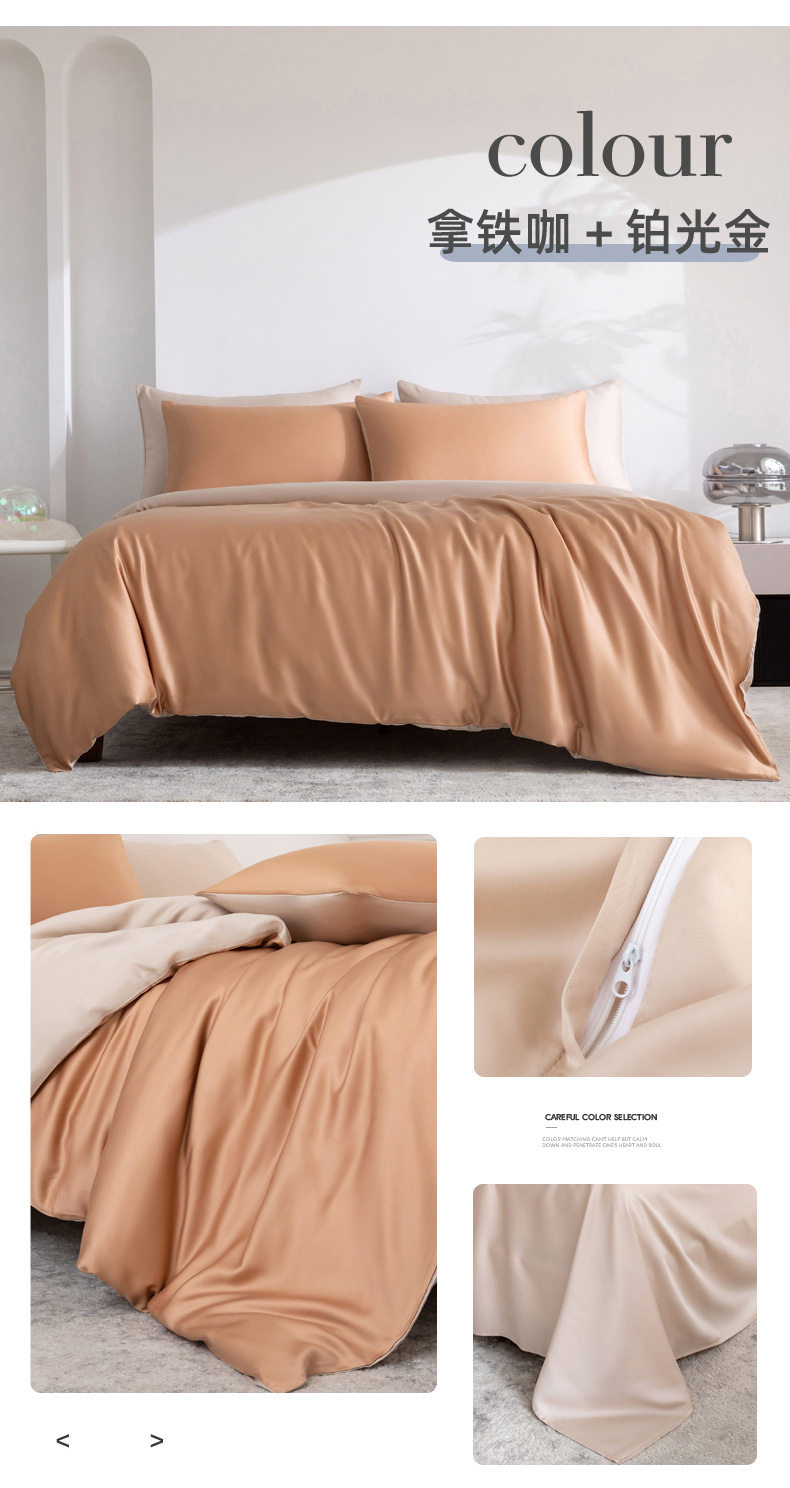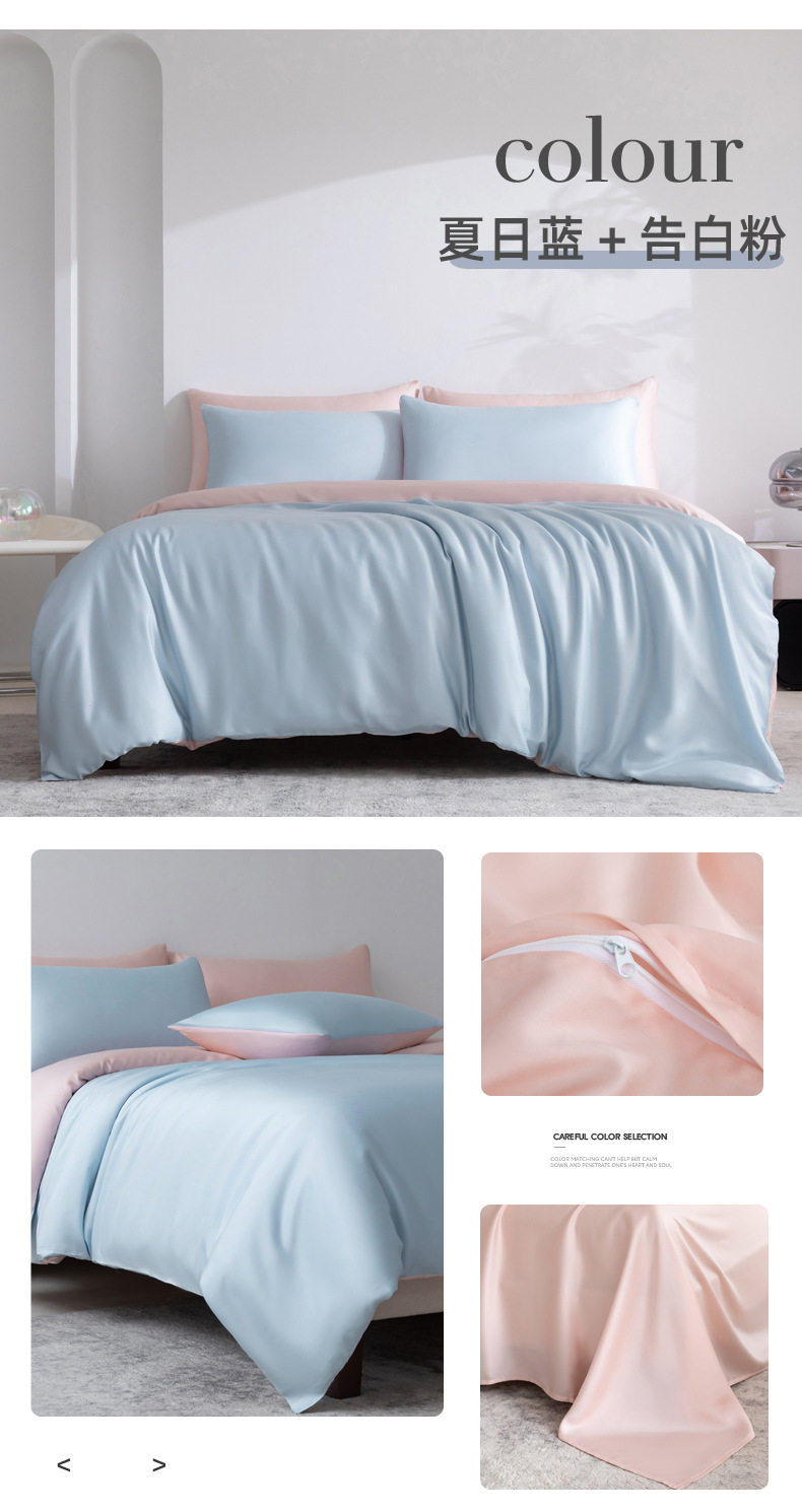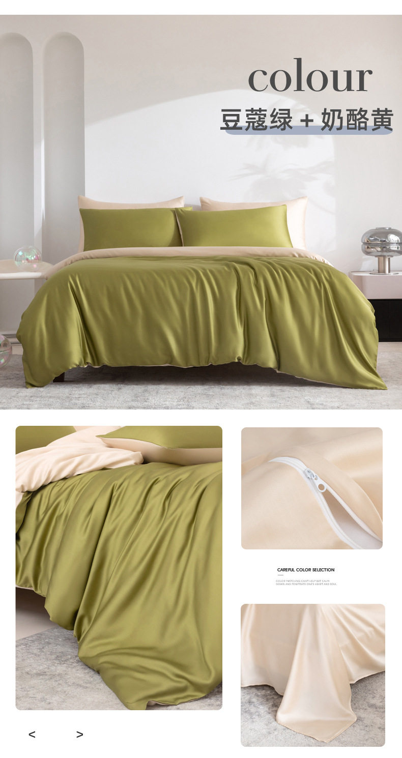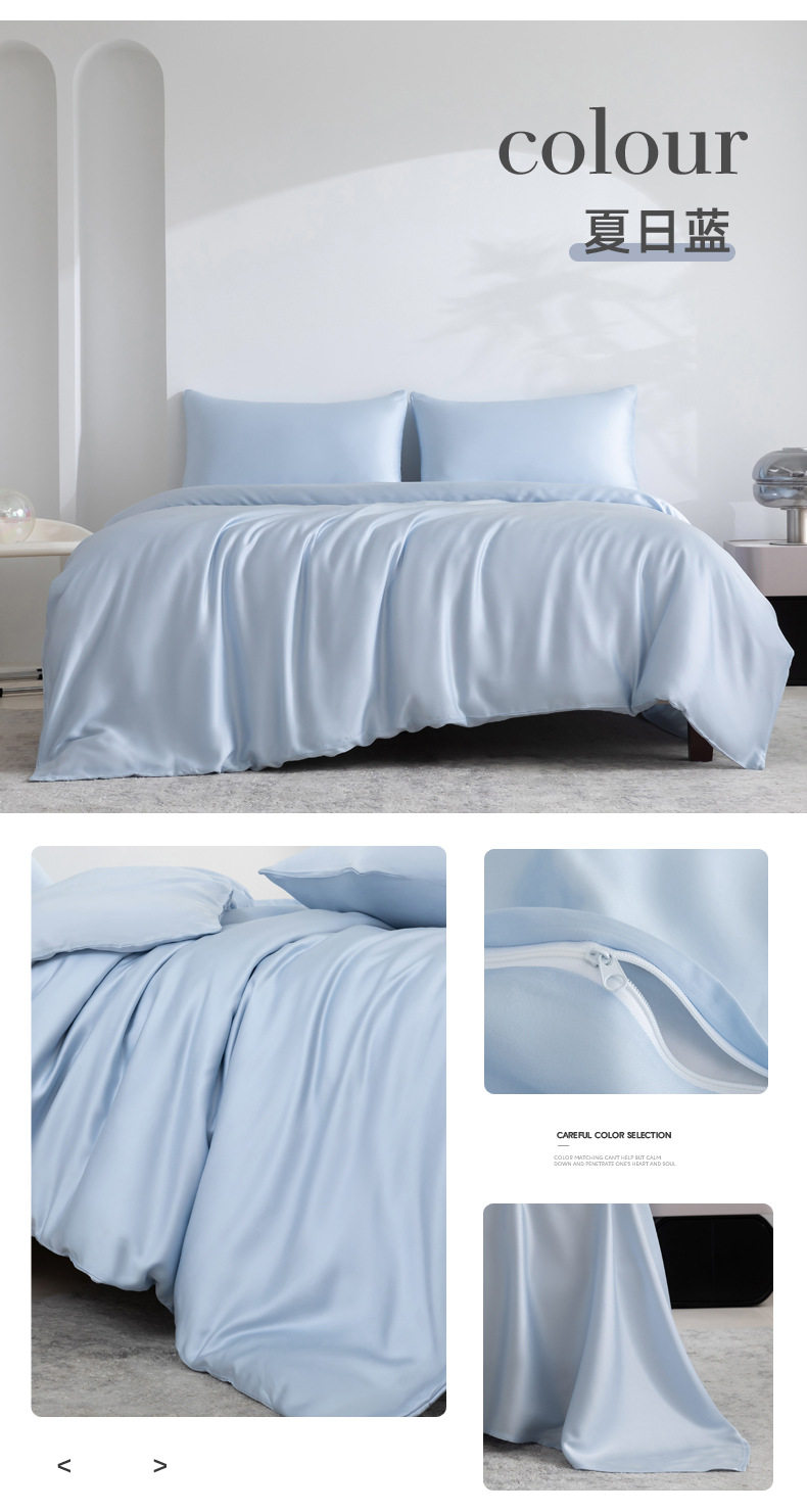 Spring and summer class A 100 solid color Lanjing Tencel four-piece set ice cool silky naked sleeping sheets quilt bedding 4