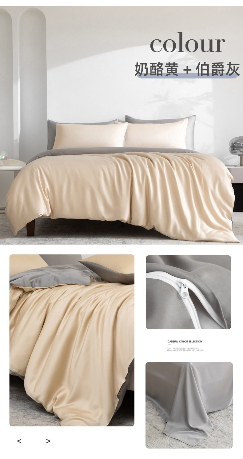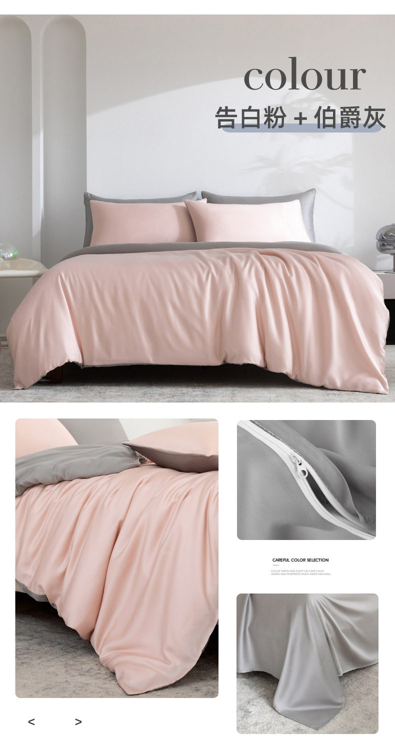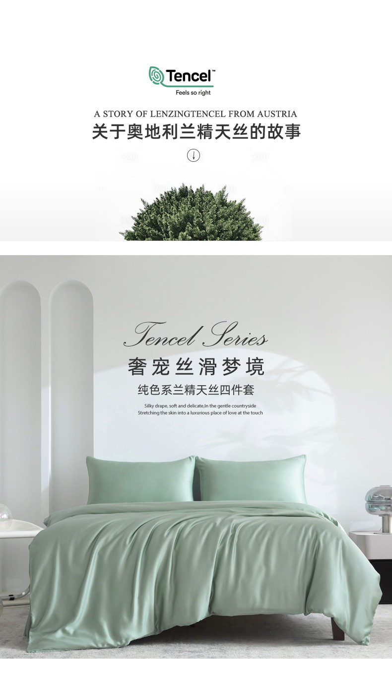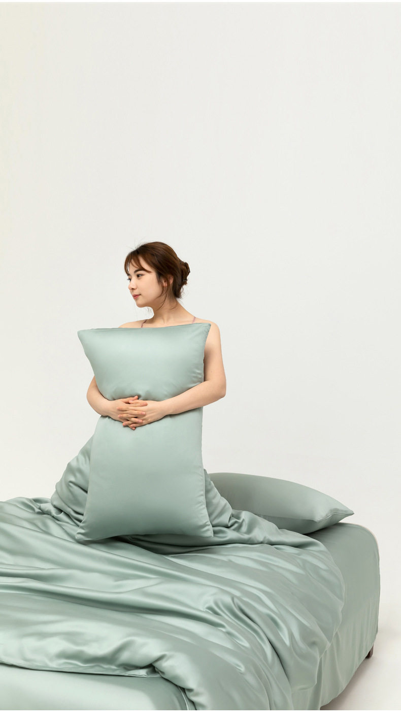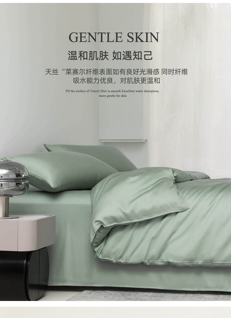 Spring and summer class A 100 solid color Lanjing Tencel four-piece set ice cool silky naked sleeping sheets quilt bedding 4