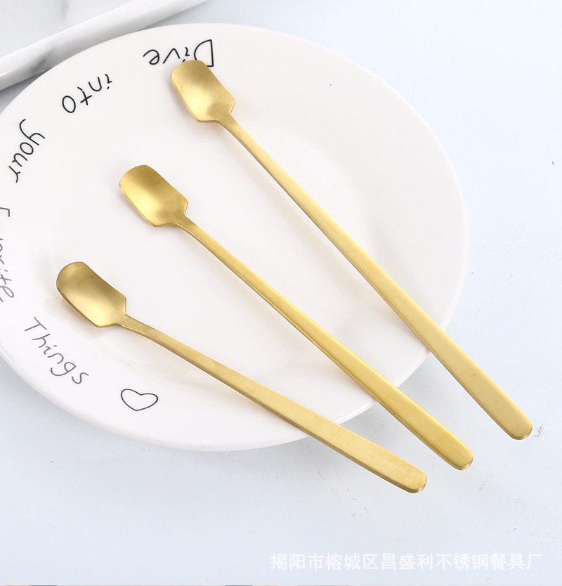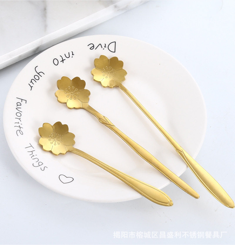 Stainless Steel Long Handle Sakura Spoon Golden Rose Spoon Accompanying Ceremony ins Tremella Spoon Stirring Square Head Spoon Leaf Spoon