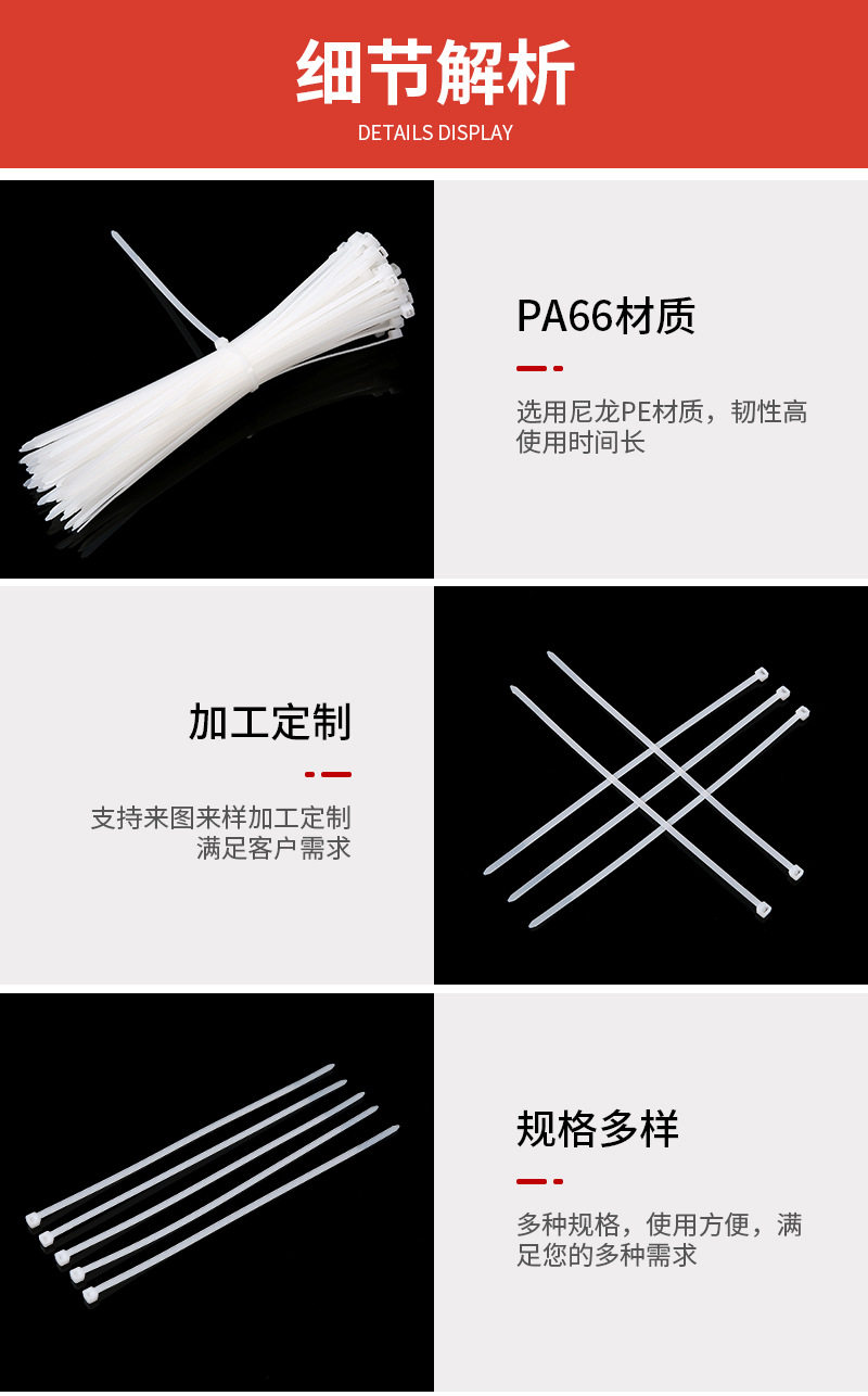 | 1 | Nylon cable ties, nylon buckle straps, cable ties, standard nylon cable ties |