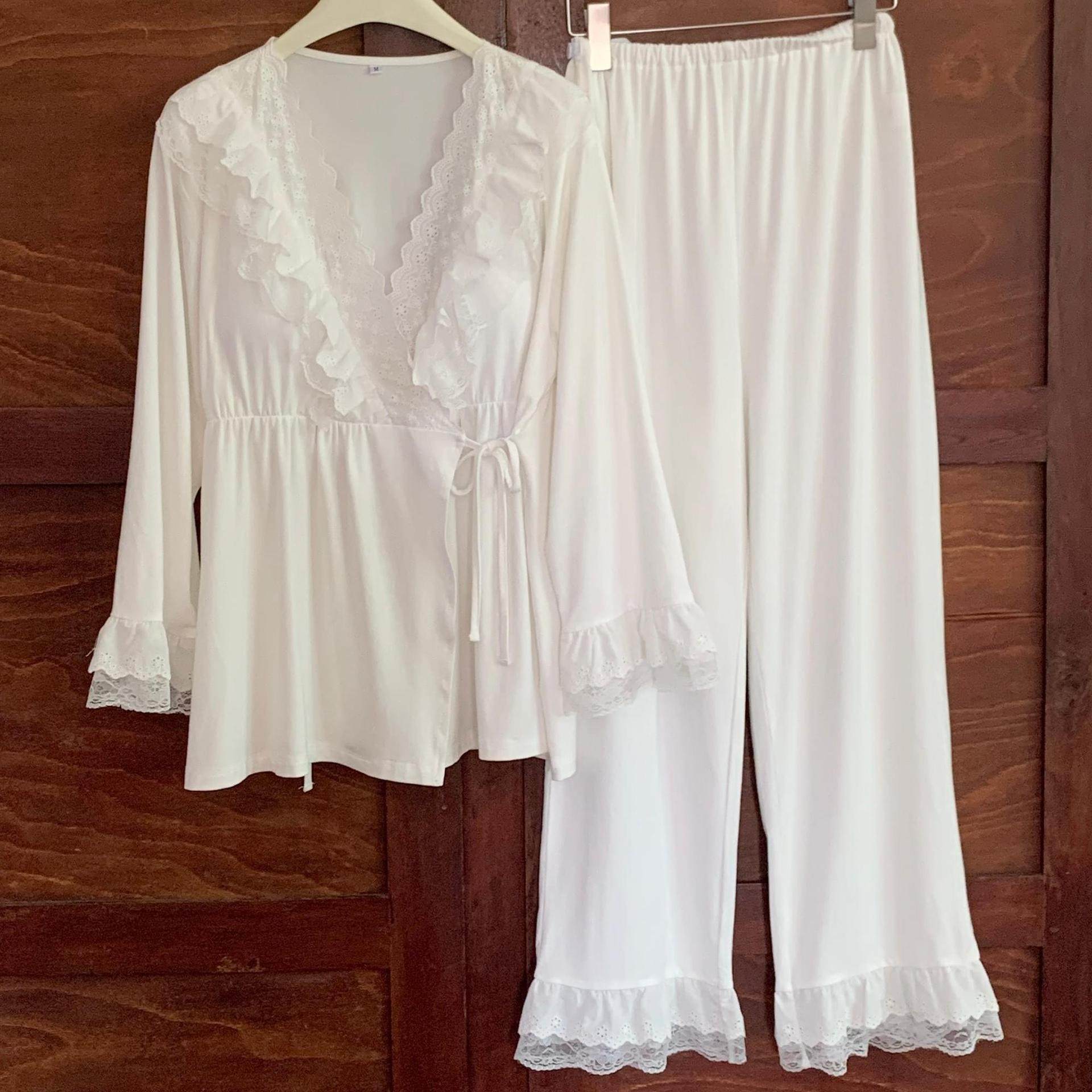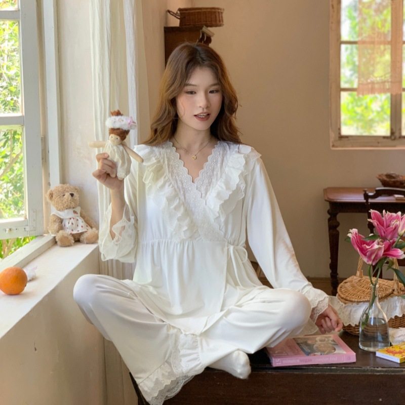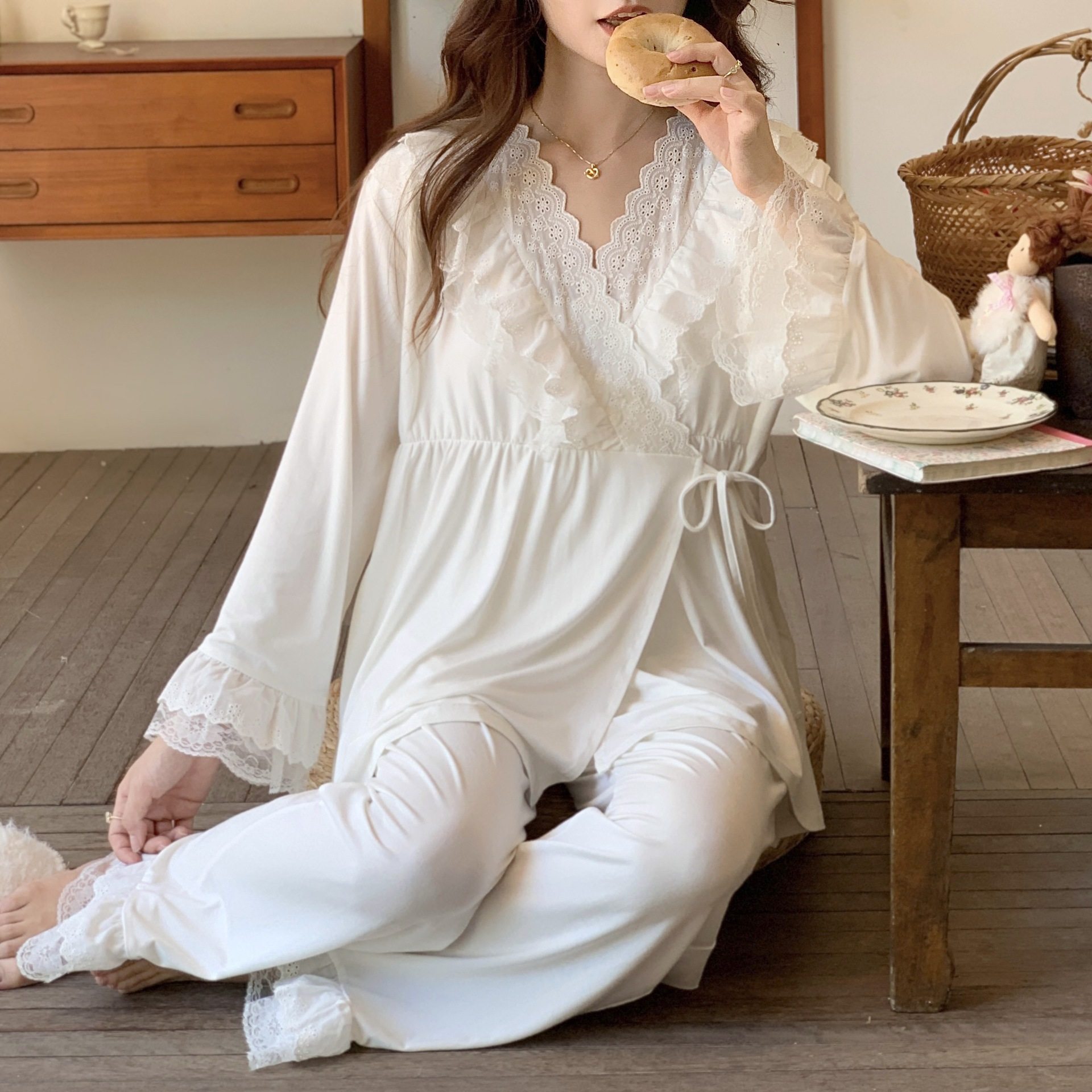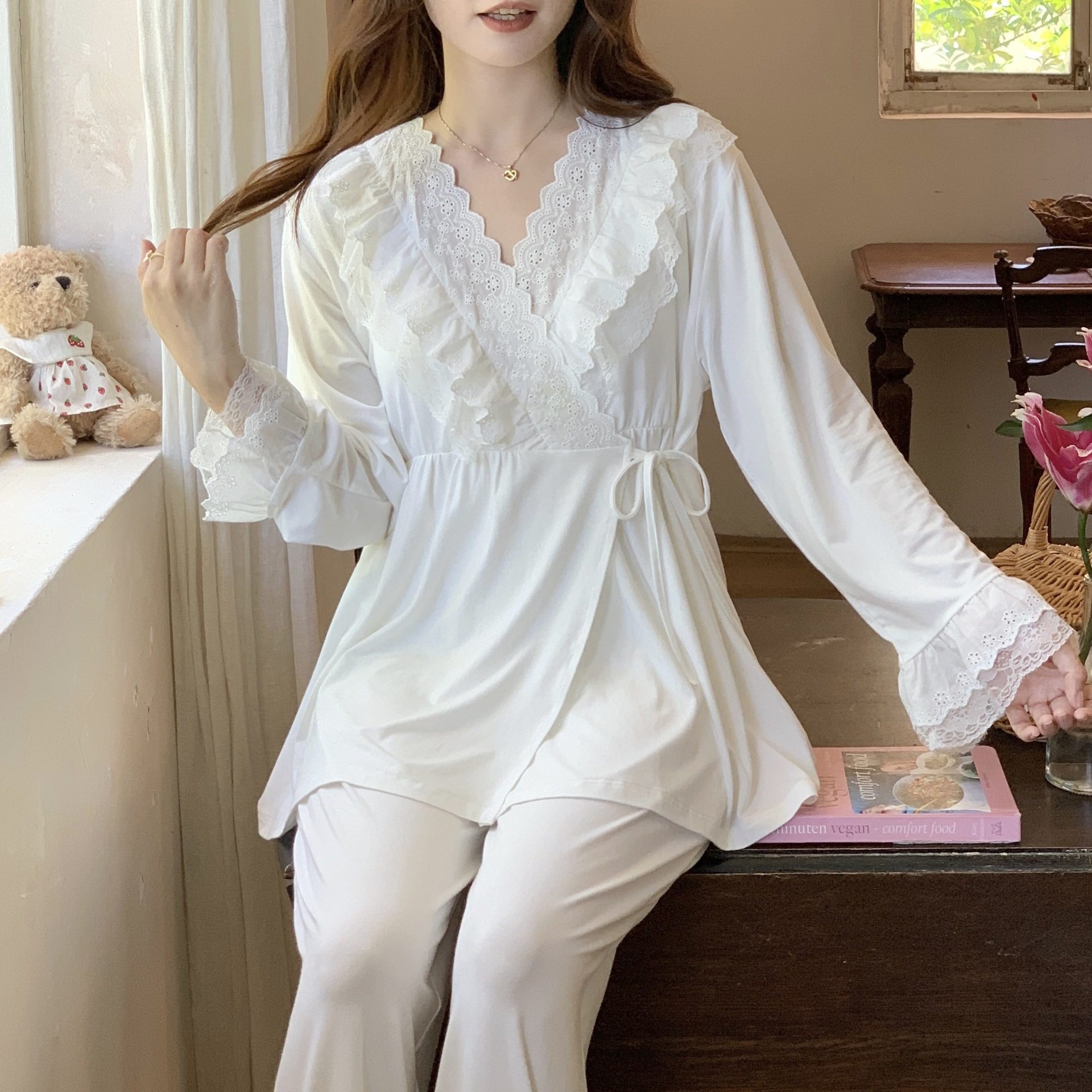 in stock 2673 Modal confinement clothing for pregnant women suit lactation pregnancy loose pajamas lace collar