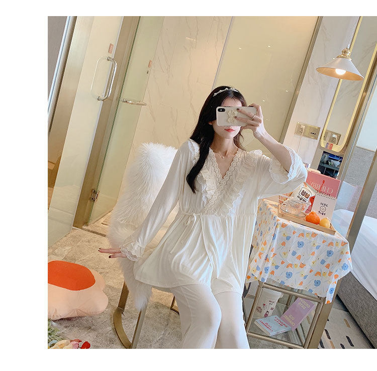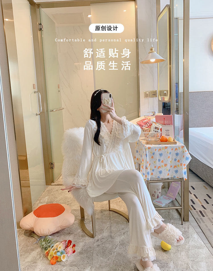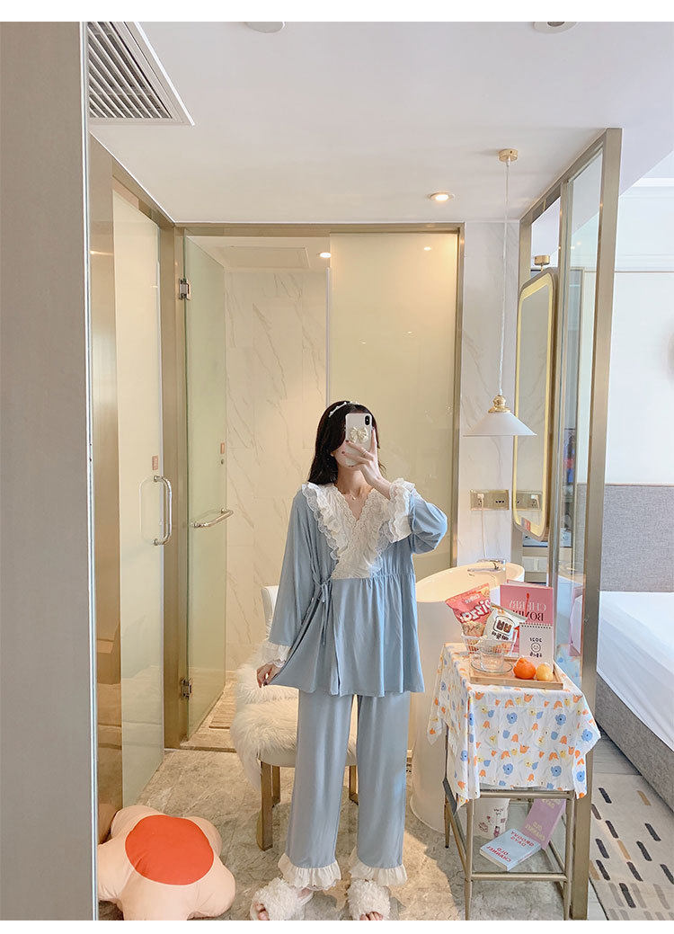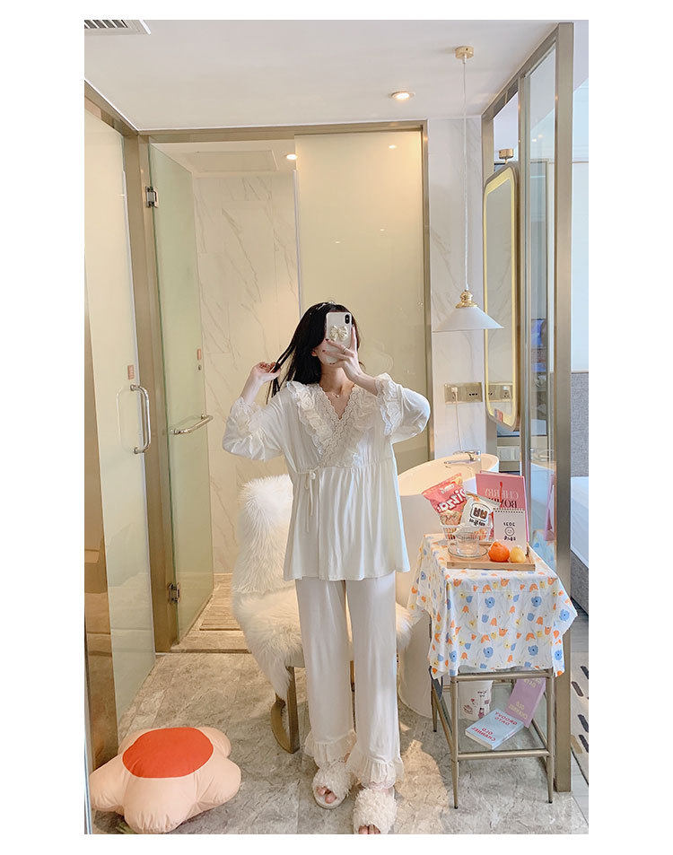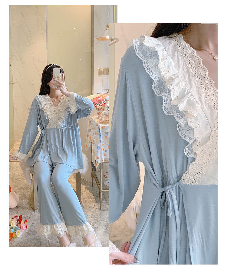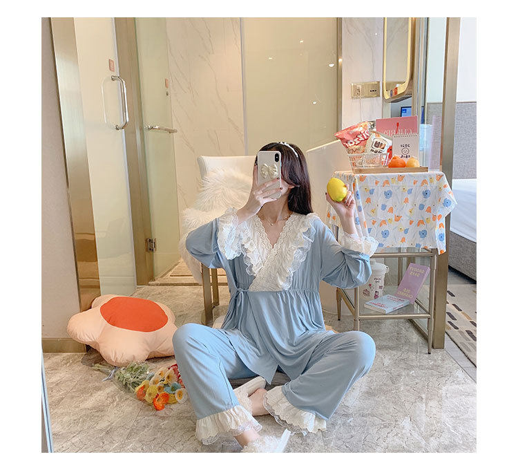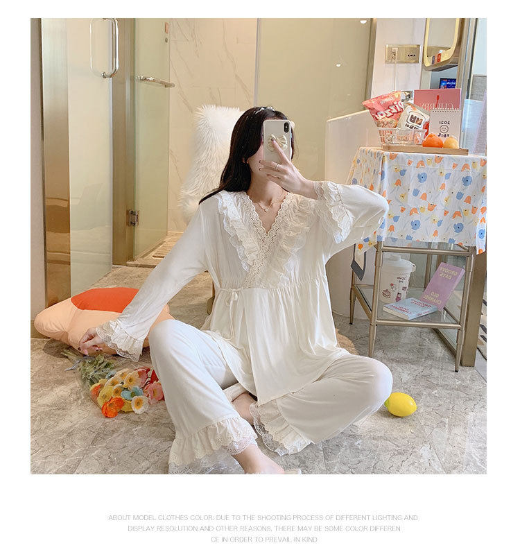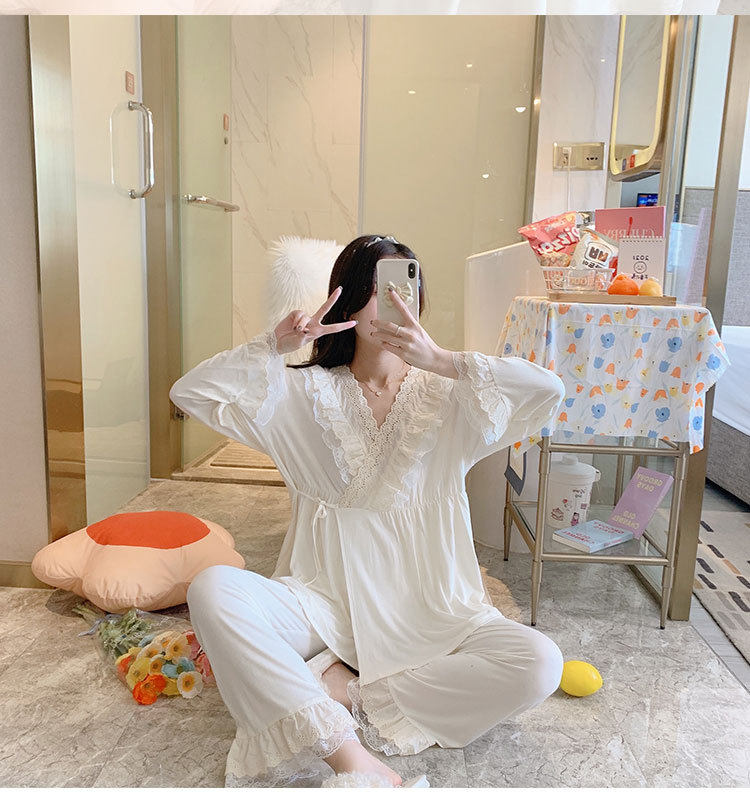 in stock 2673 Modal confinement clothing for pregnant women suit lactation pregnancy loose pajamas lace collar