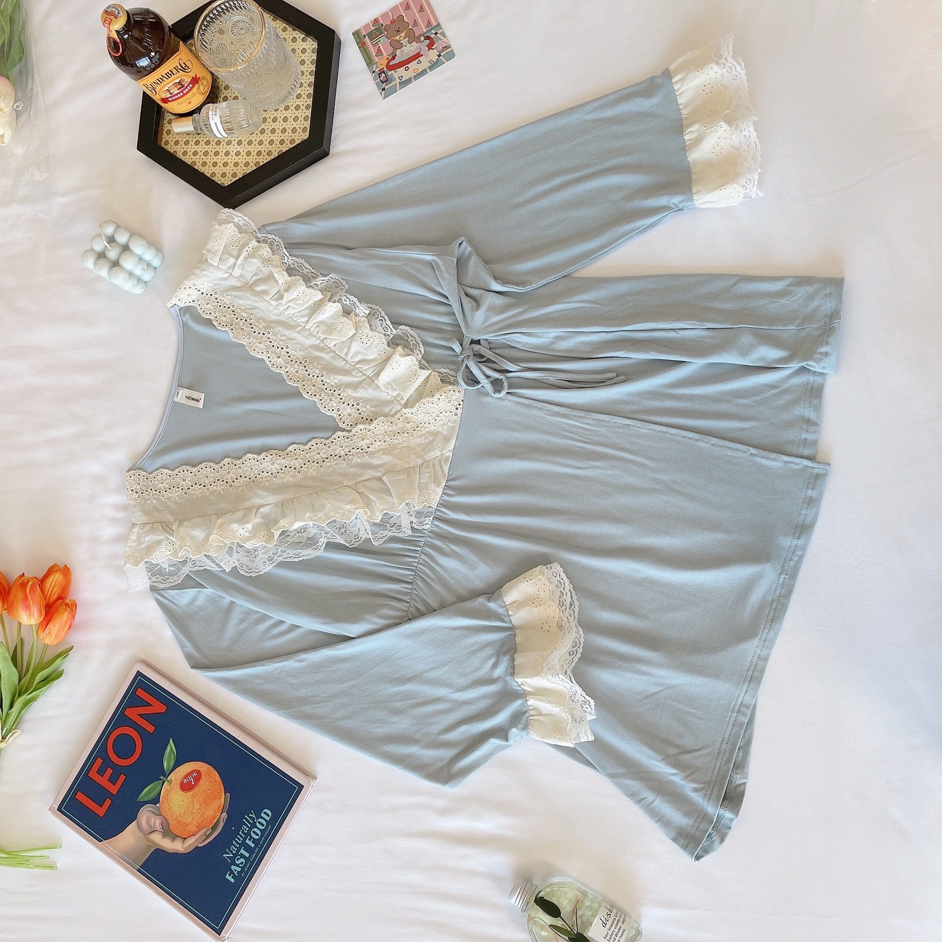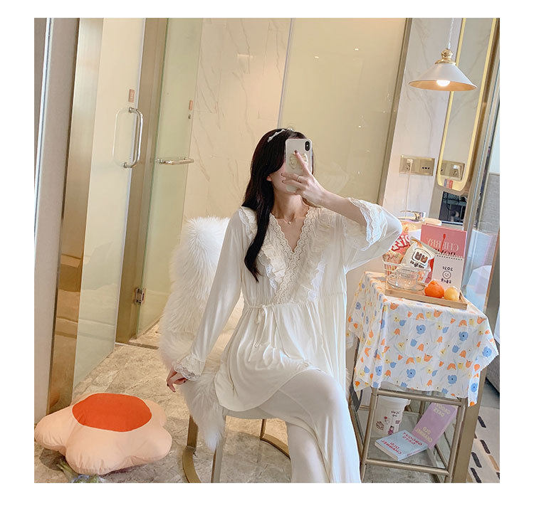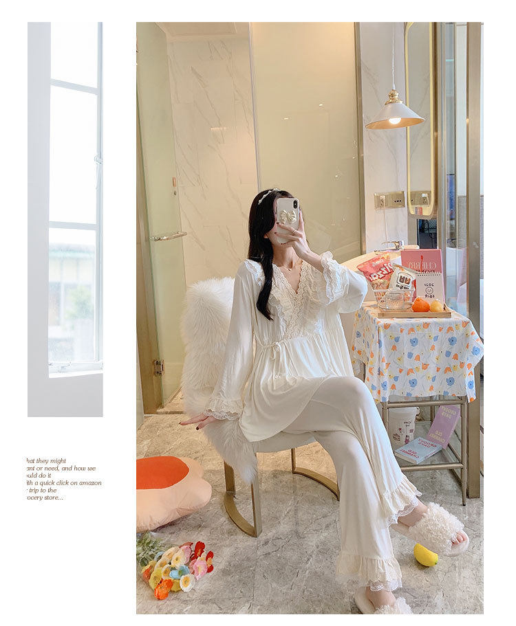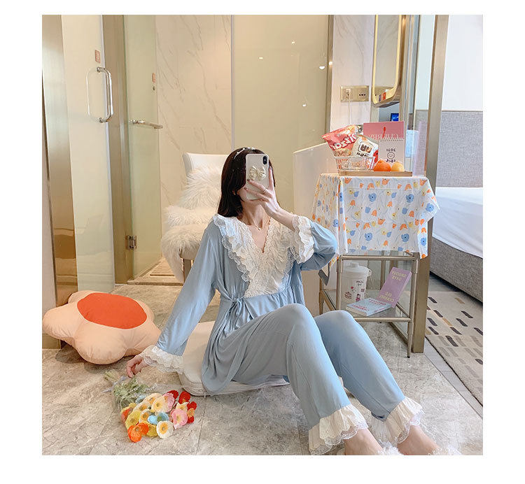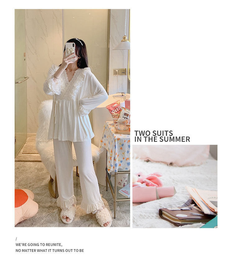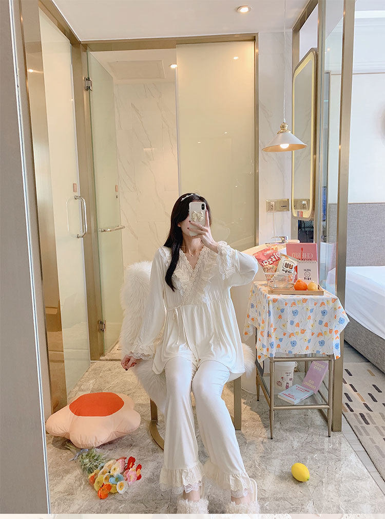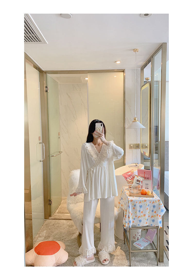 in stock 2673 Modal confinement clothing for pregnant women suit lactation pregnancy loose pajamas lace collar