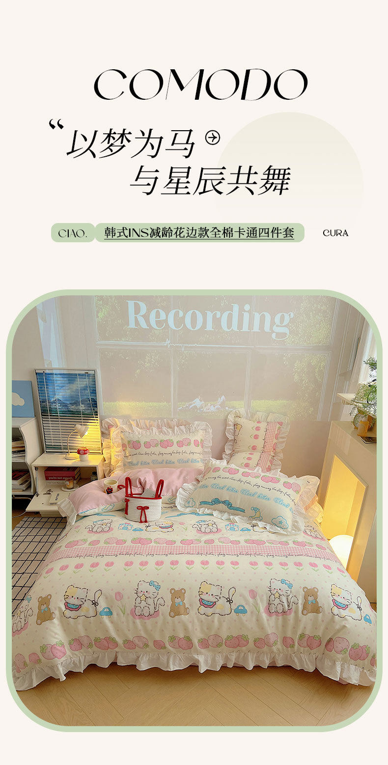 2025 New Princess Style 100 Pure Cotton Bed Skirt Four-Piece Set Internet Celebrity Cotton Quilt Cover Bedspread Bed Cover 1.8 Fitted Bed Sheets 4