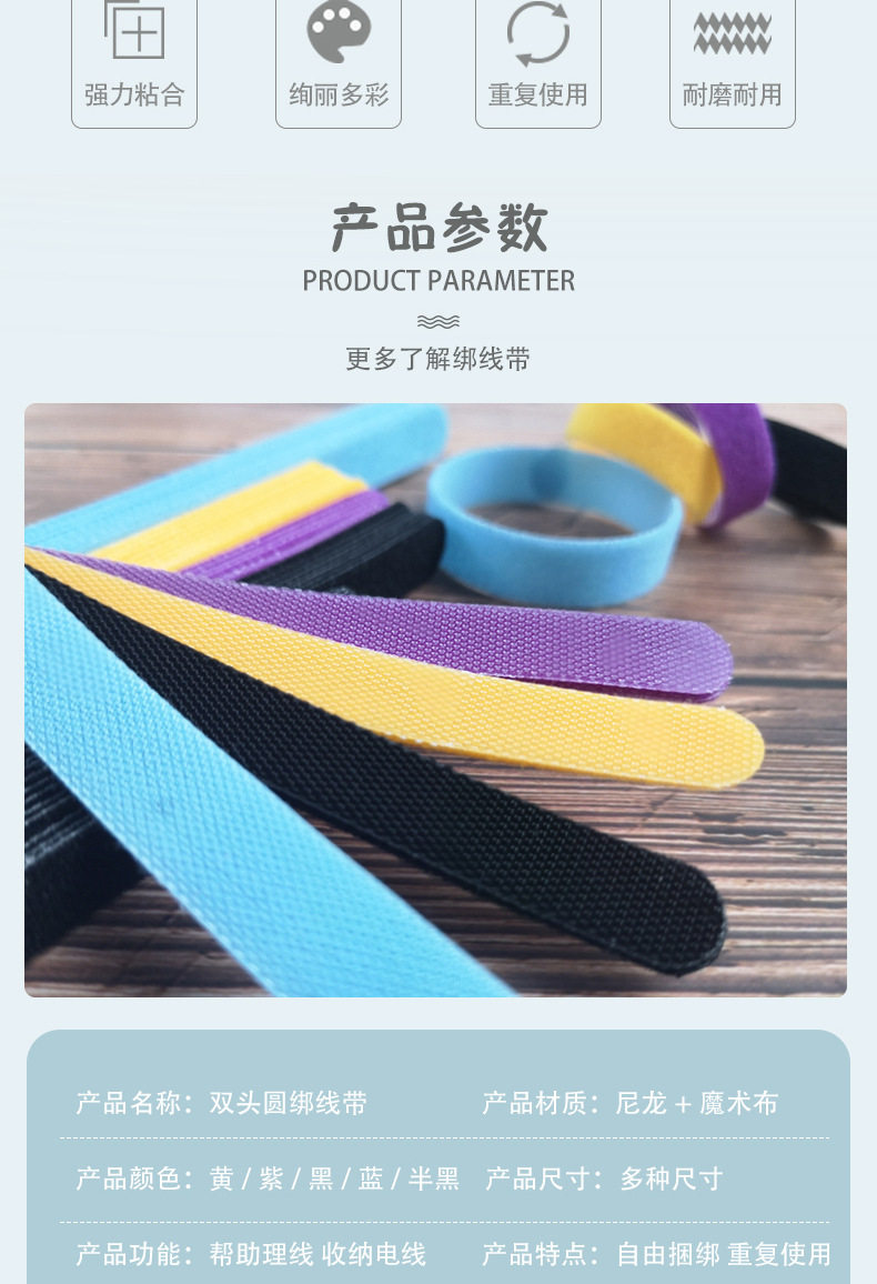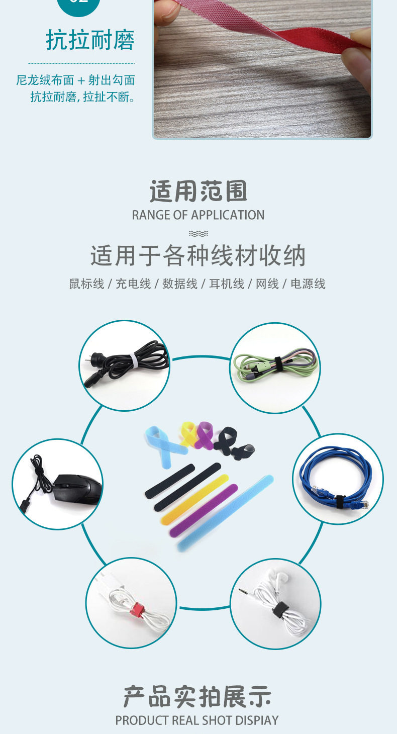 Velcro Velcro Cable Tie Data Wire Headset Fixed Cable Tie with Color Self-adhesive Velcro Cable Tie