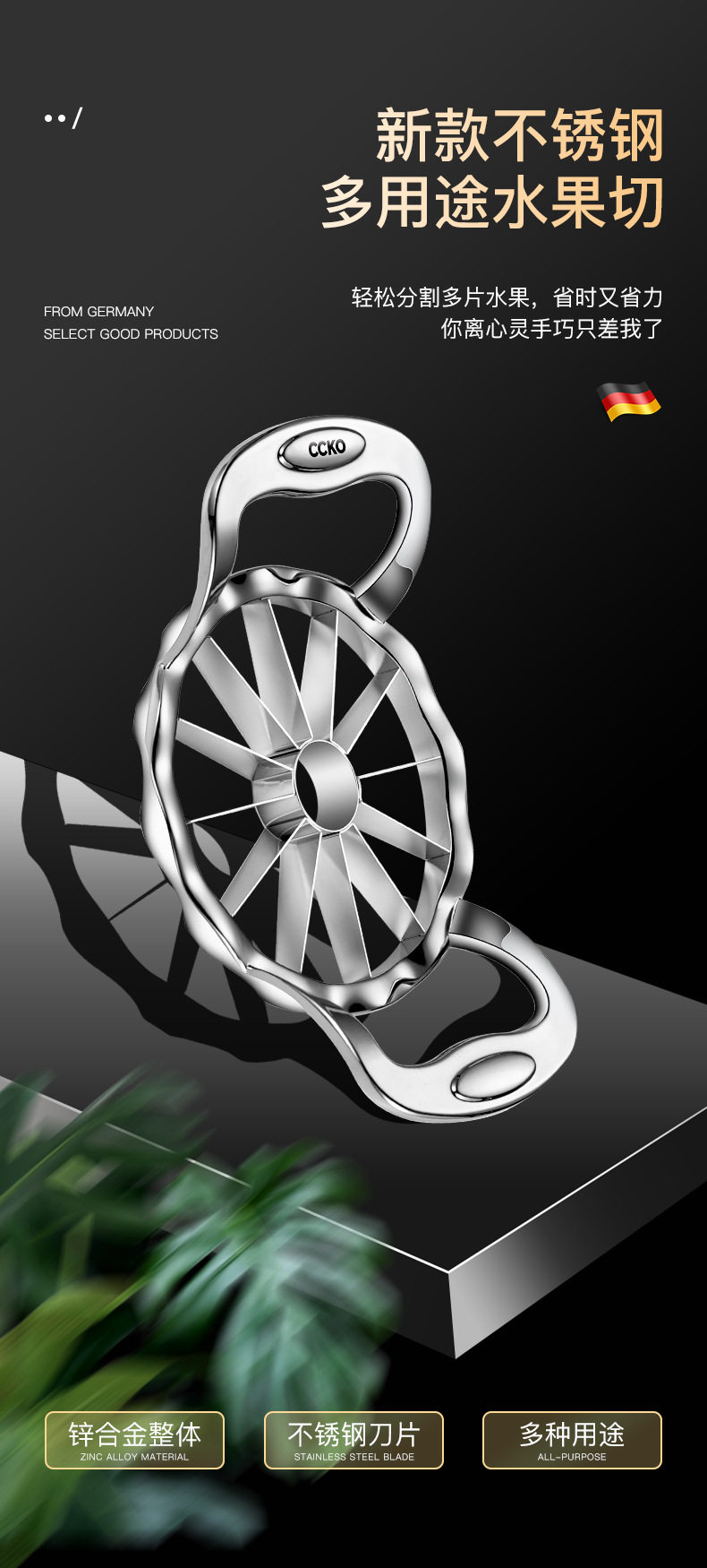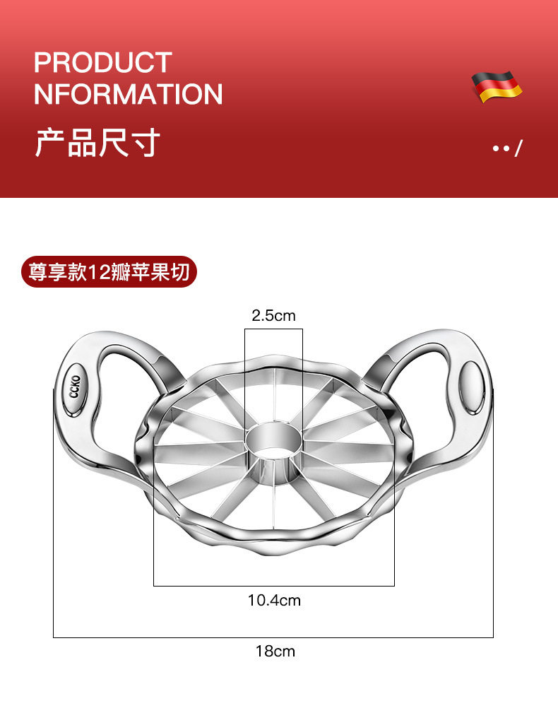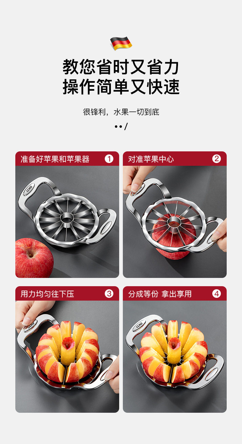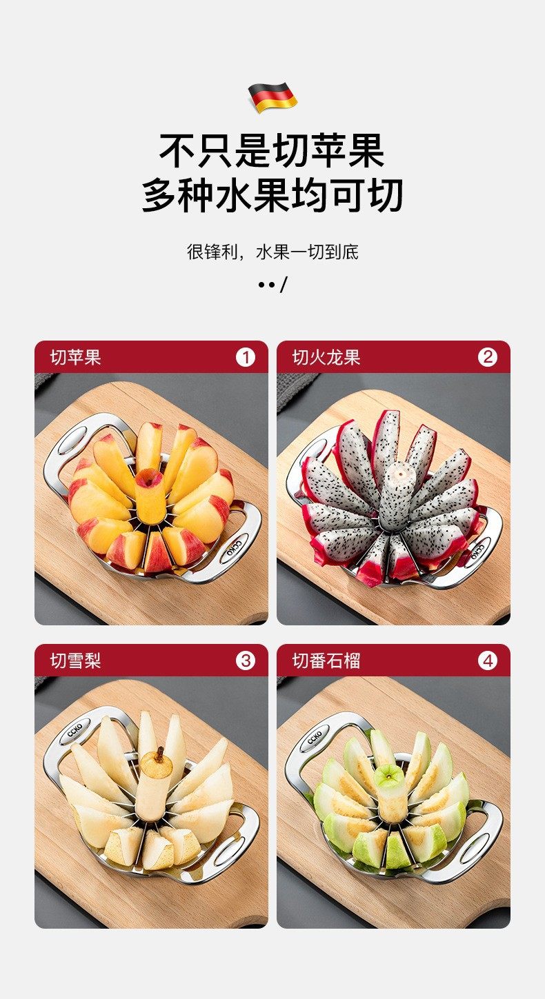 Germany cccko Stainless Steel Quick Fruit Cutter Household Fruit Cutting Artifact Apple Cutting Slicer Splinter Large Size