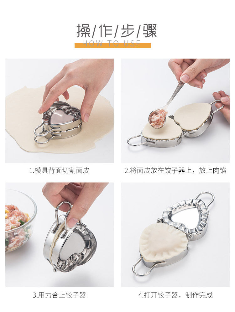 Spot Dumpling Making Artifact 304 Stainless Steel Dumpling Making Tool Heart-Shaped Creative Dumpling Mold Dumpling Wrapper Artifact