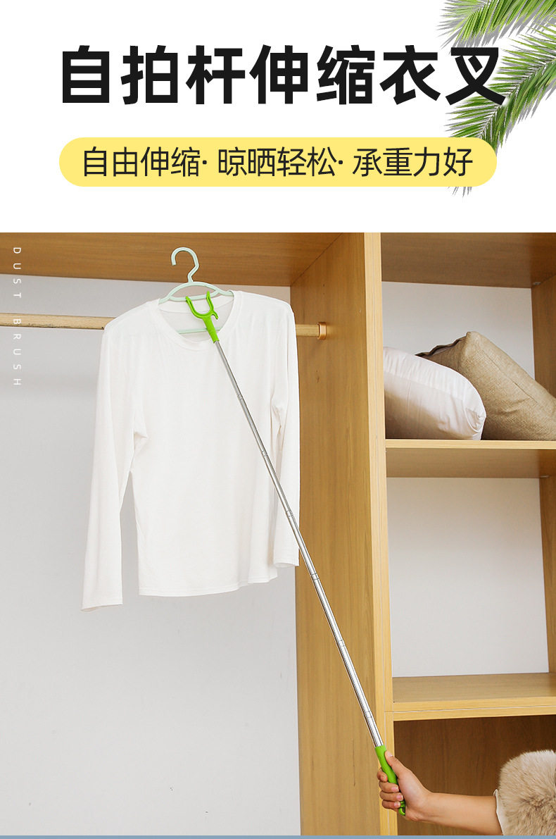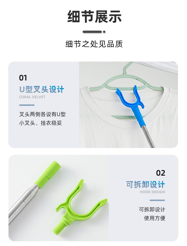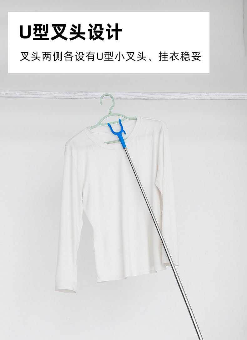 New Stainless Steel Telescopic U-shaped Small Fork Clothes Rod Balcony Clothes Picking Rod Lengthened Clothes Rod Clothes Rod Clothes Fork