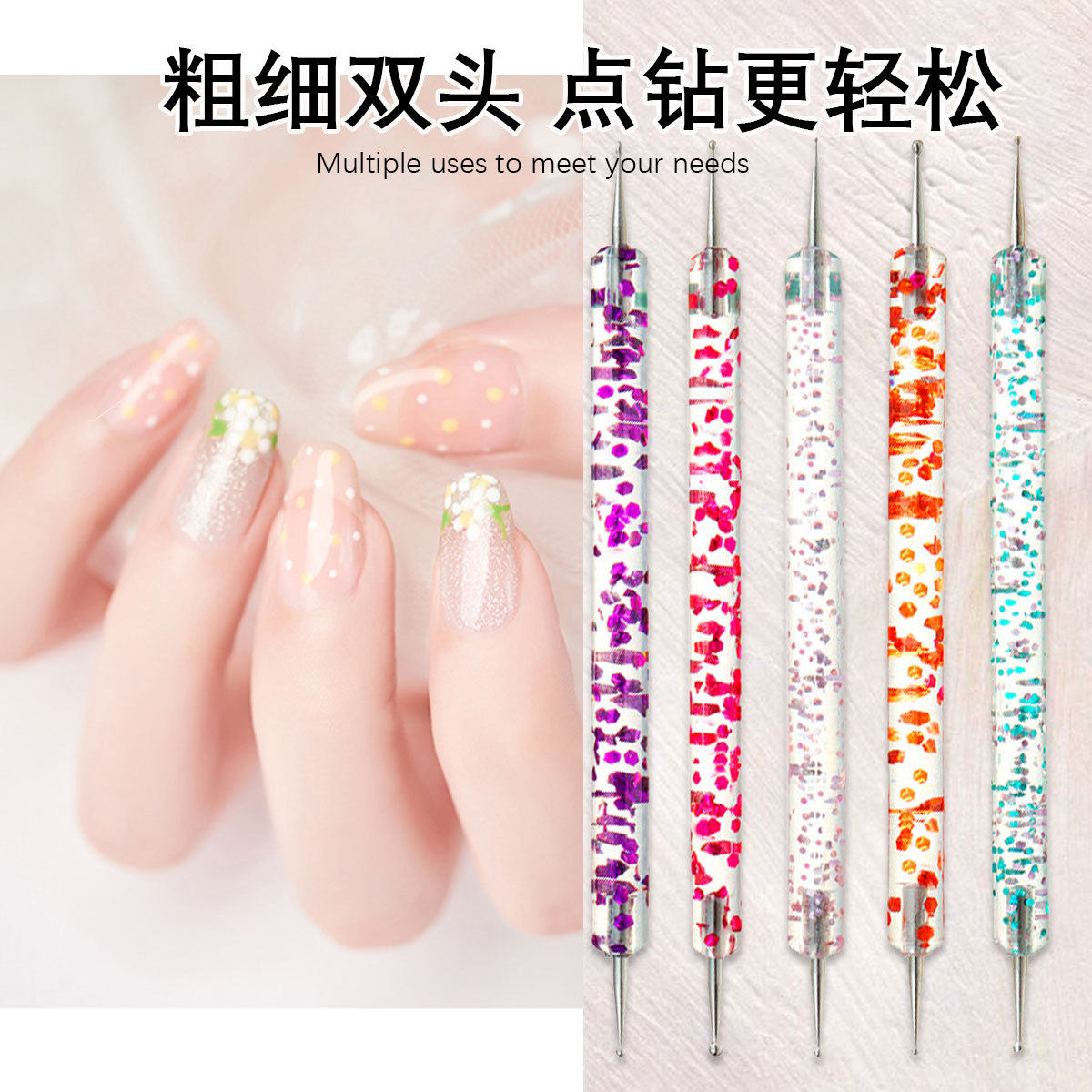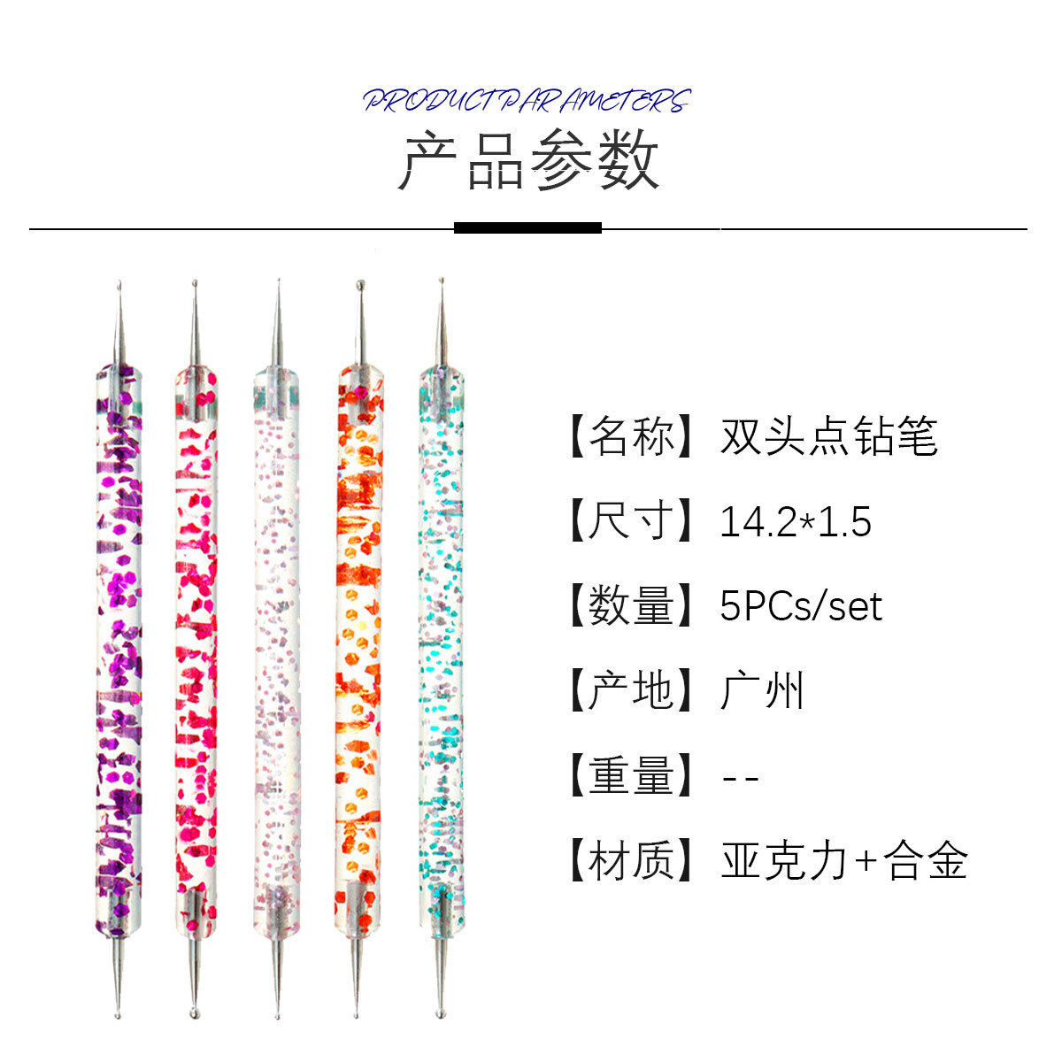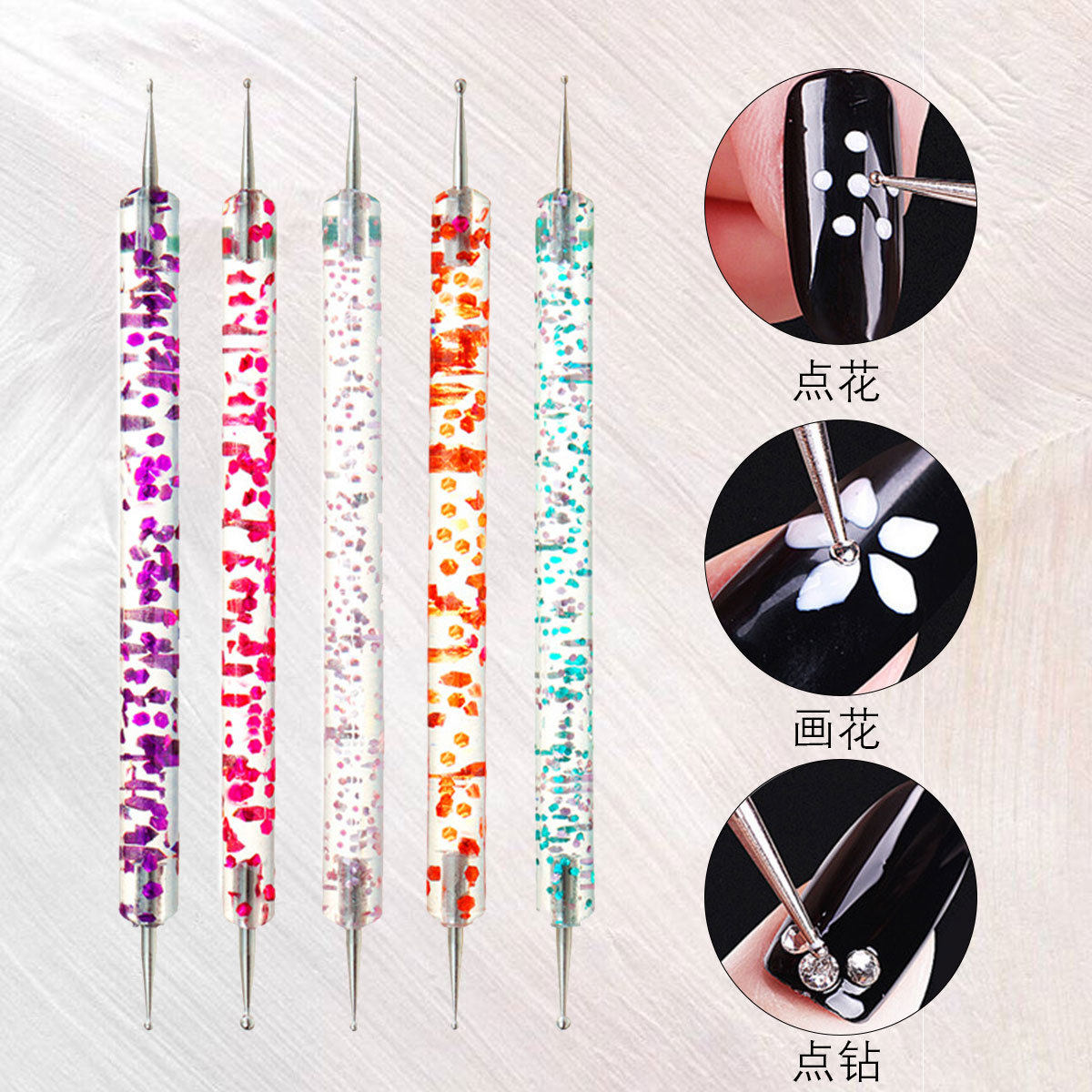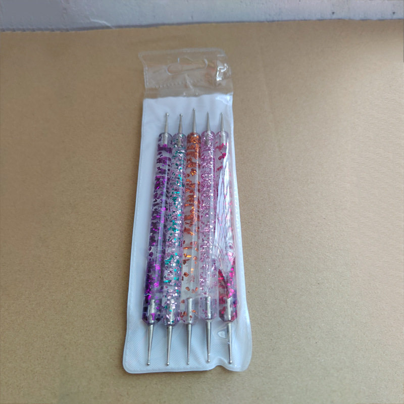 Nail art double-head drill pen 5 sequin thread rod drill needle set double-head acrylic dot pen wholesale