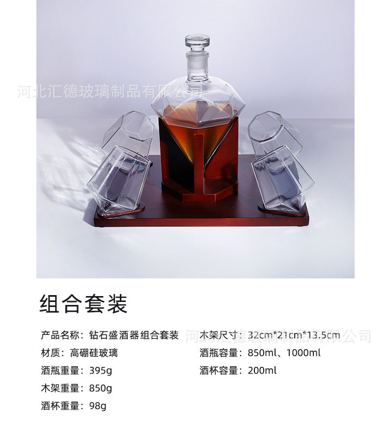 Amazon Bestseller Whiskey Set Diamond-Shaped Decanter High Borosilicate Glass Liquor Dispenser Craft Liquor