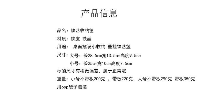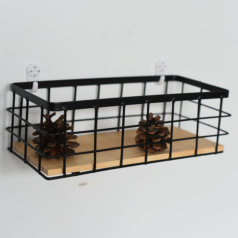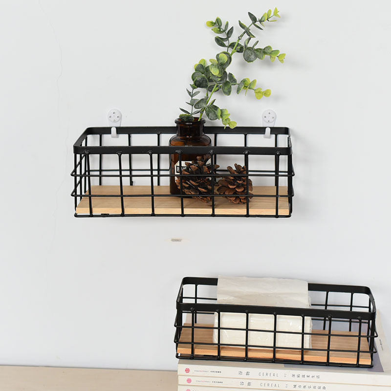 Iron Storage Basket Wall-Mounted Flower Basket Shelf Makeup Box Iron Frame Wall Basket Desktop Storage Rectangular Storage Basket