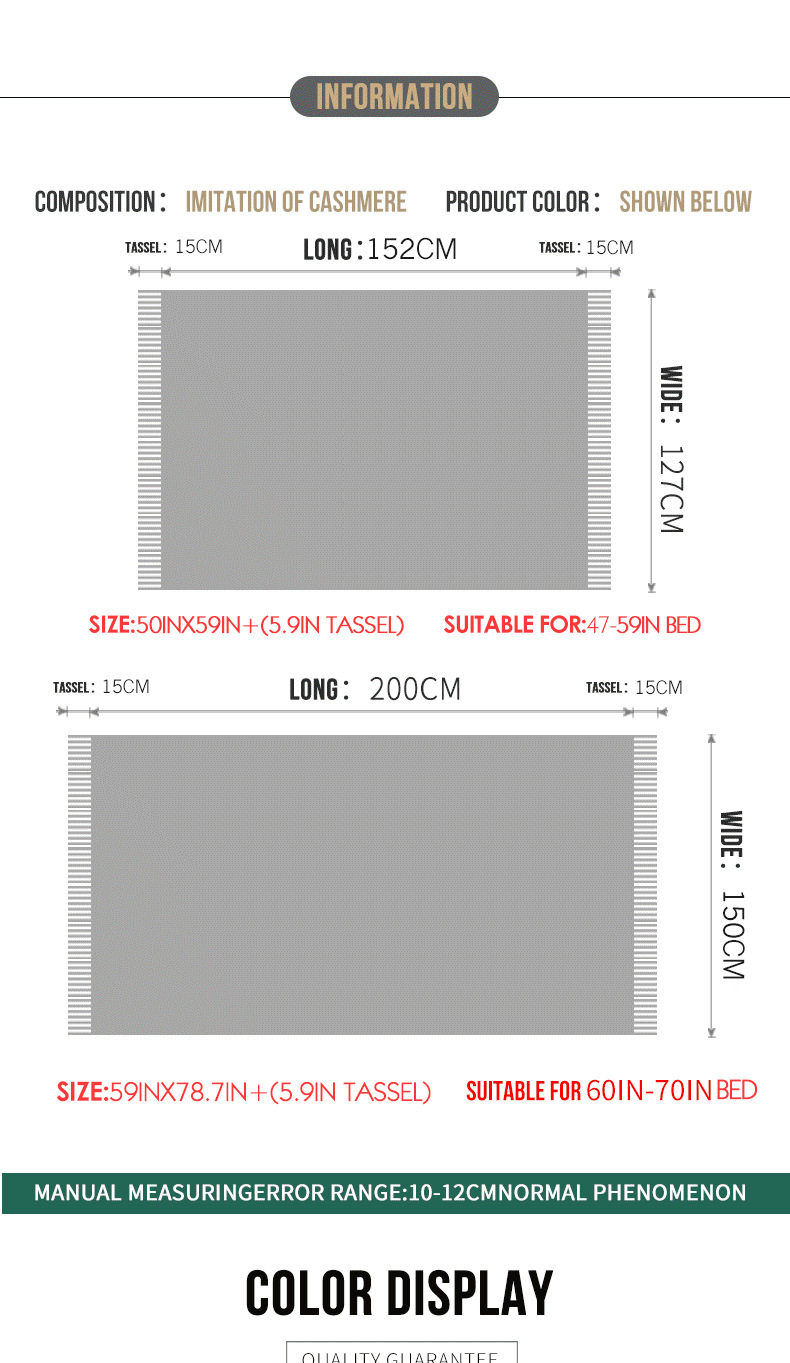 | Dimensions | 127*180cm (including tassel),150*230cm (including tassels),130*230cm (including tassels) |
