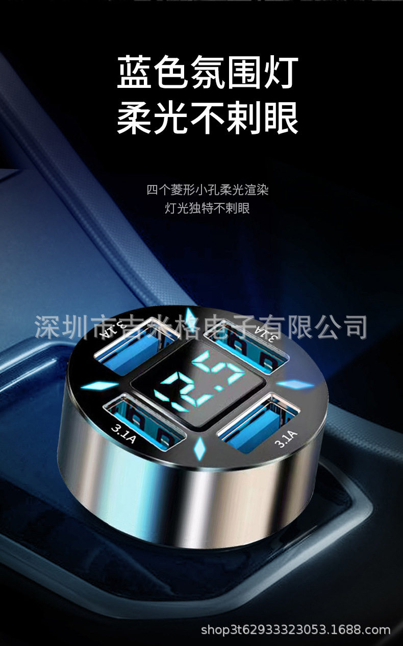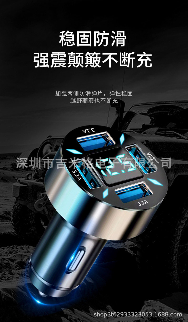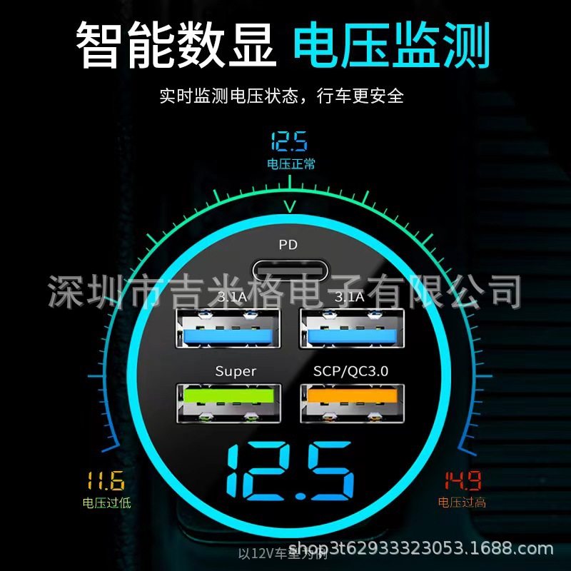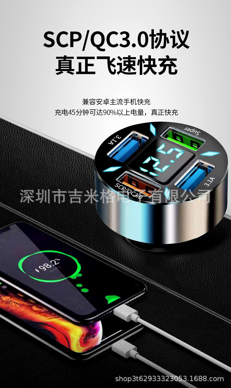 New digital display car charger 4usb 66W fast charge PD mobile phone charging head one drag four QC3.0 car charger