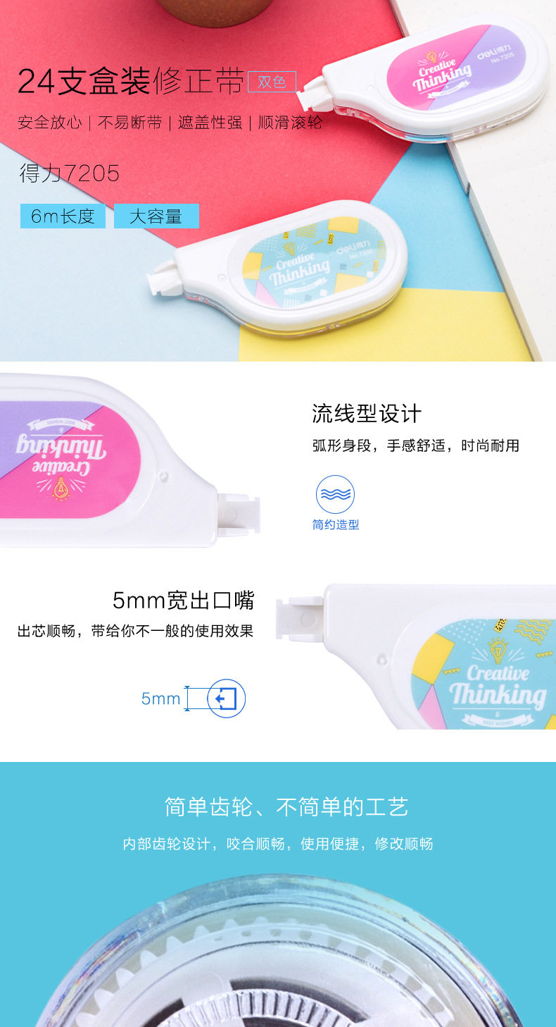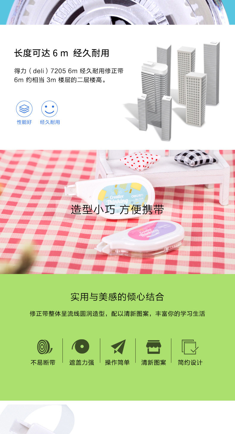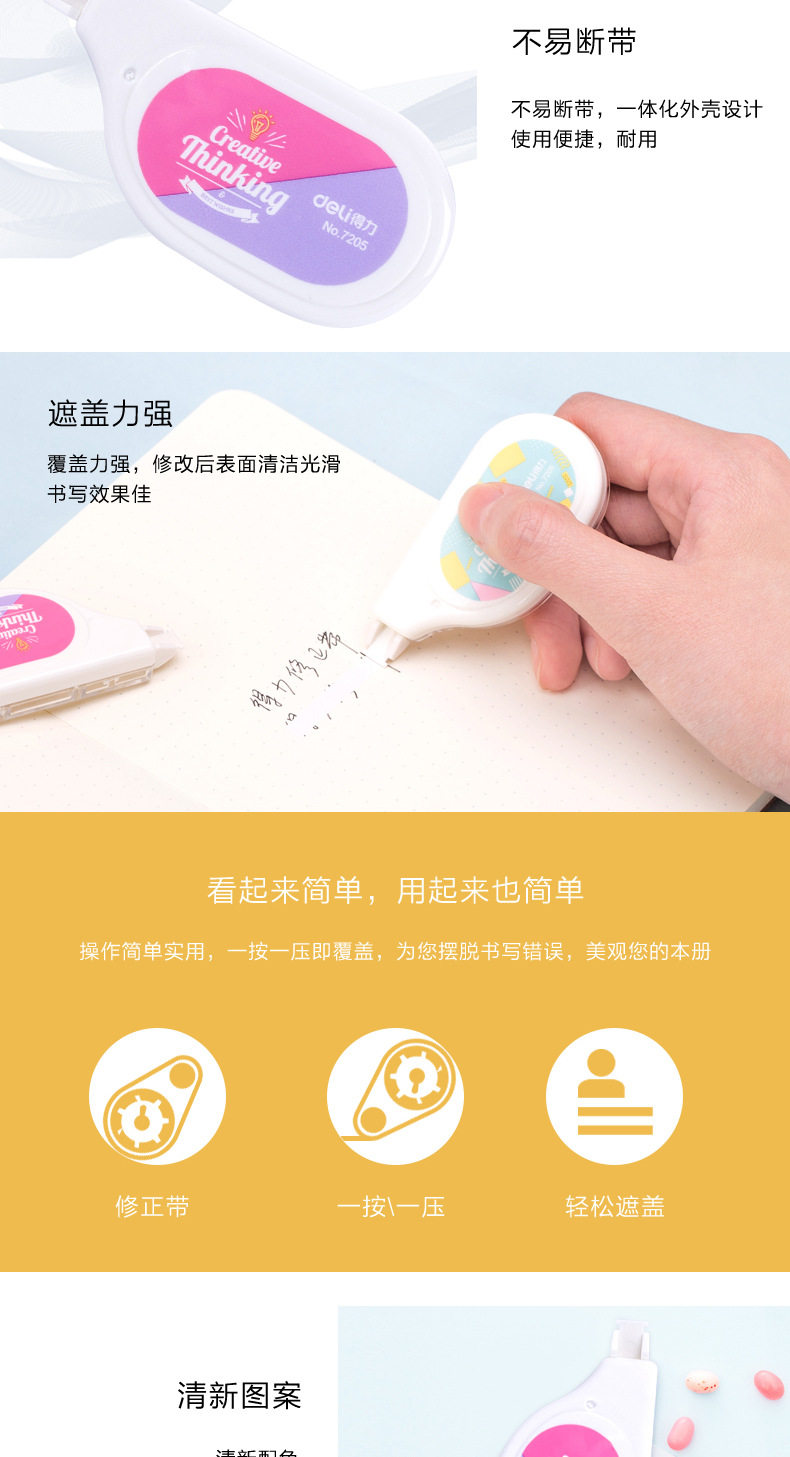 Deli 7205 Correction Tape Correction Tape 6m Cartoon Cute Student Stationery Creative Cost-Effective
