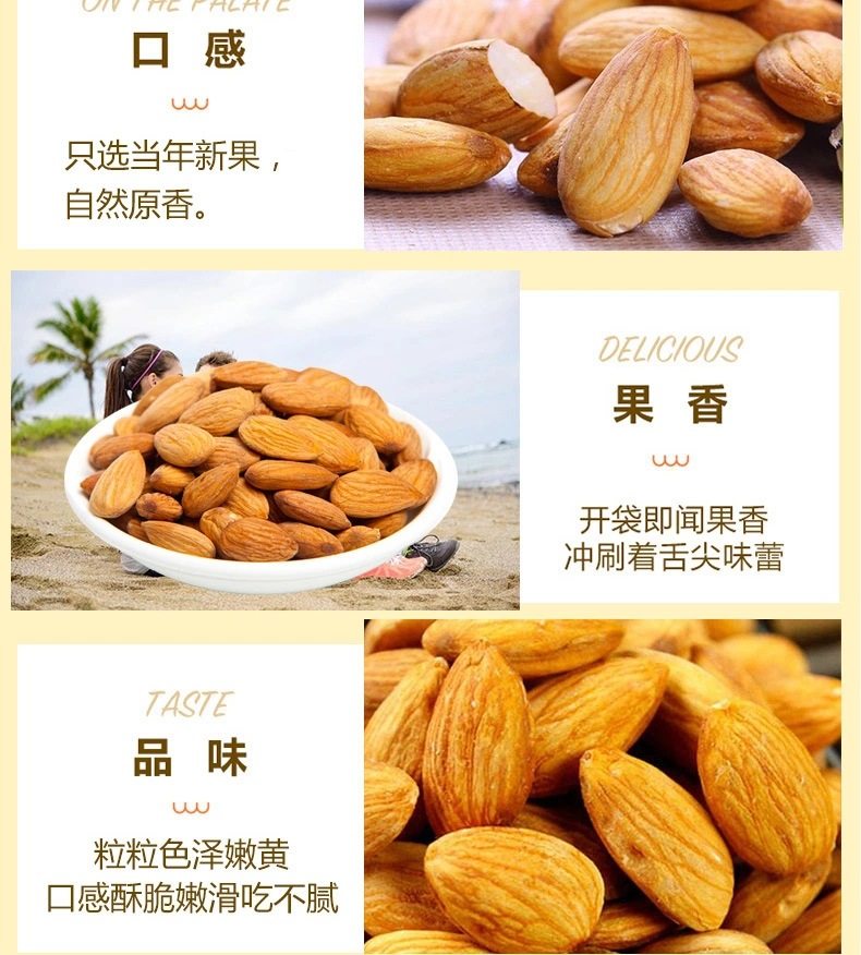| Packaging specifications | Almond kernel net weight 500 g/bag |