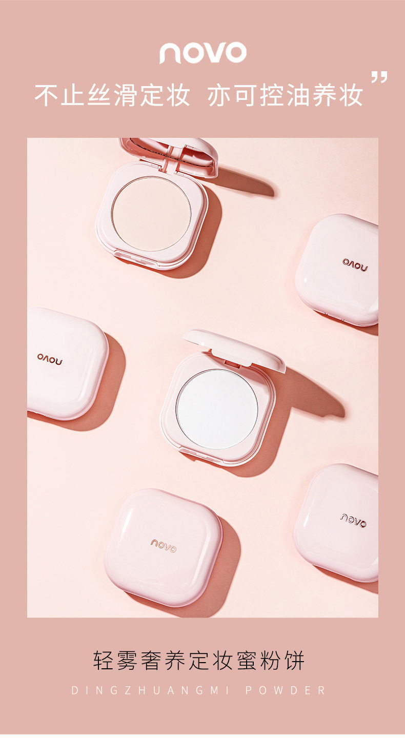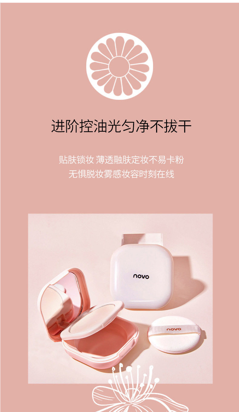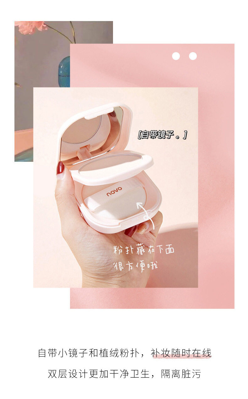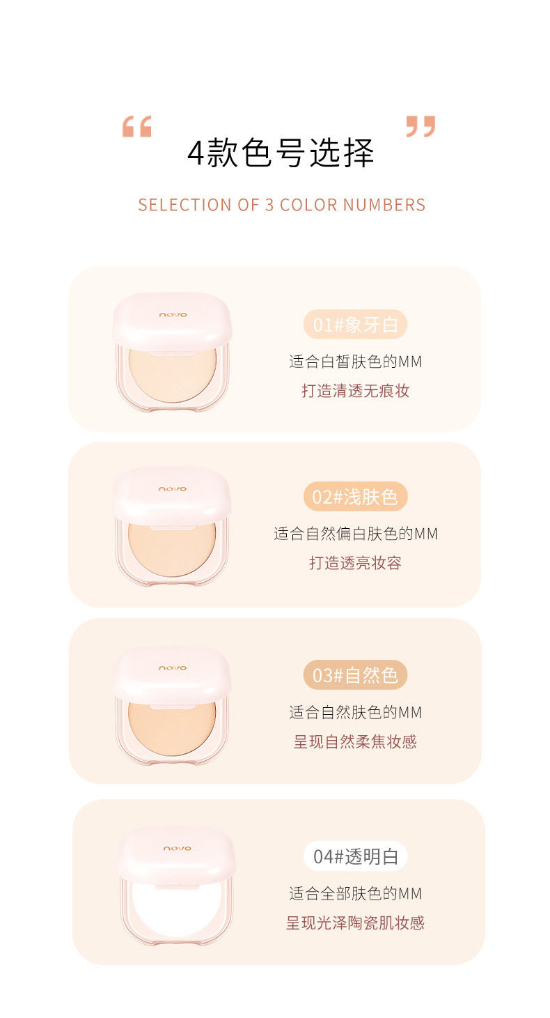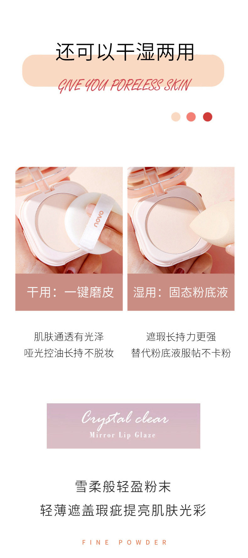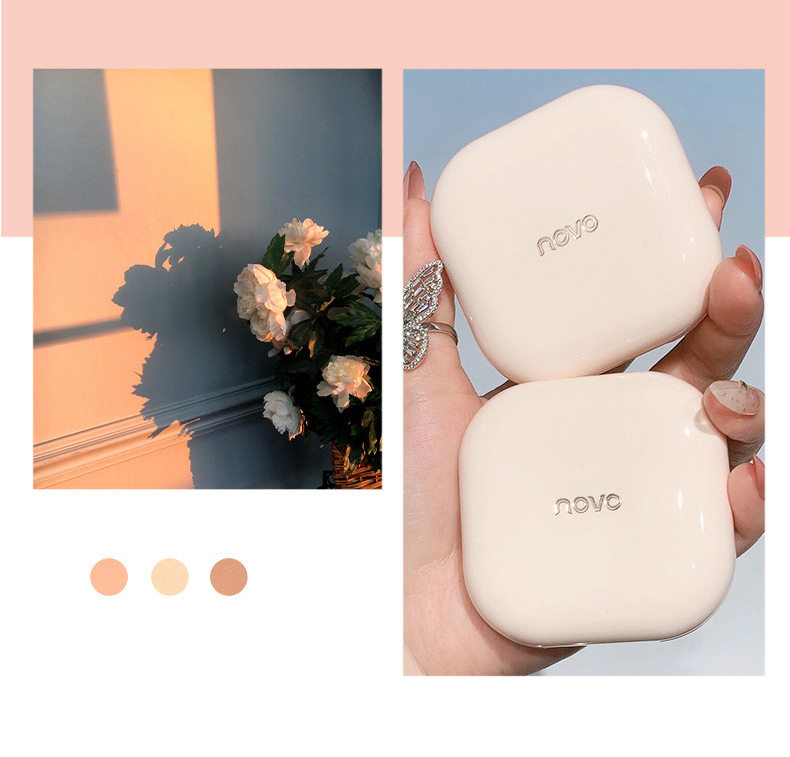 Novo Light Mist Luxurious Setting Powder Matte Concealer Waterproof Non-Cakey Dual-Use for Dry and Wet Use Student Setting Powder Foundation Oil Control