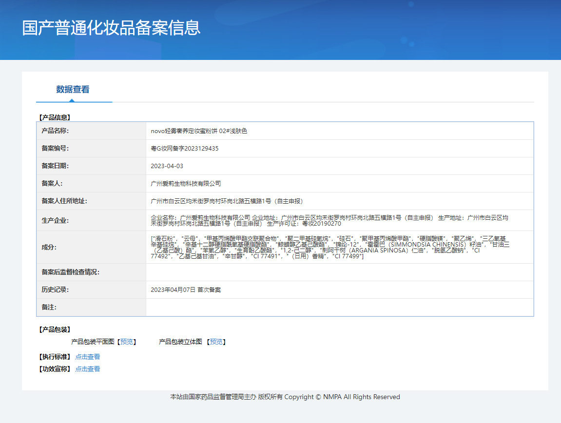 | Non-special cosmetics record certificate number | Guangdong g makeup network preparation number 2023129436 |