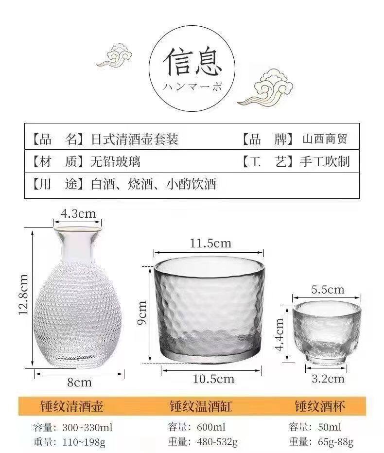 | Specification | One pot, four cups and one vat [free cork] pearl cotton gift box,One pot, four cups and one vat [free cork],One pot and four cups [comes with cork],Sake jug,Wine warming tank,Sake glass |
