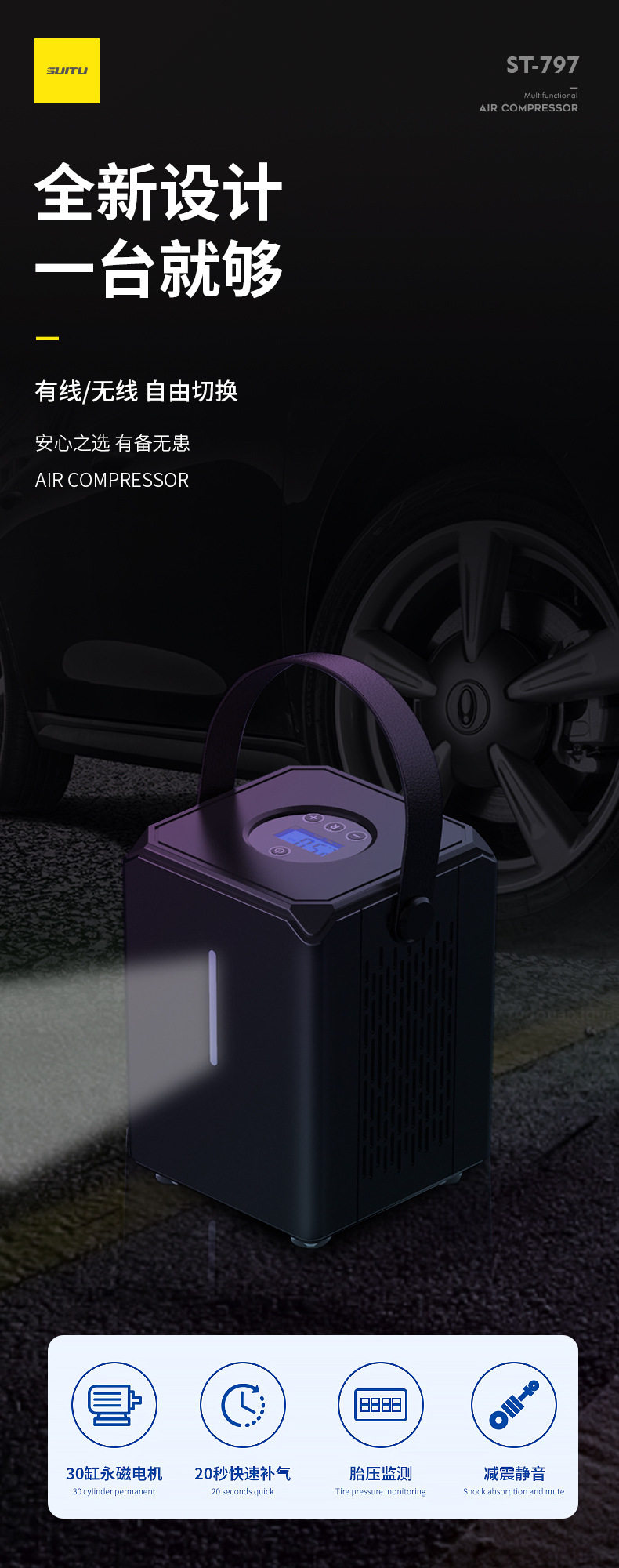Car air pump wireless digital display air pump portable air pump pump pump tire inflator auto supplies