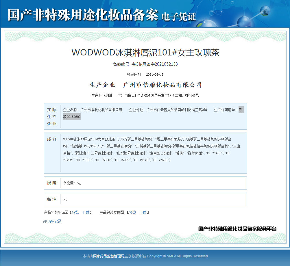 | Non-special cosmetics record certificate number | Guangdong G makeup net preparation word 2021052133 |