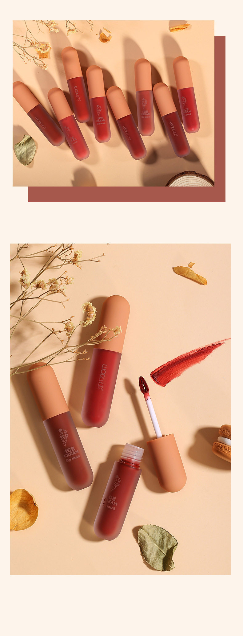 WODWOD Ice Cream Lip Mud Mist Velvet Matte Not Easy to Stick Cup Student Women White Brown Orange Mousse Lip Glaze
